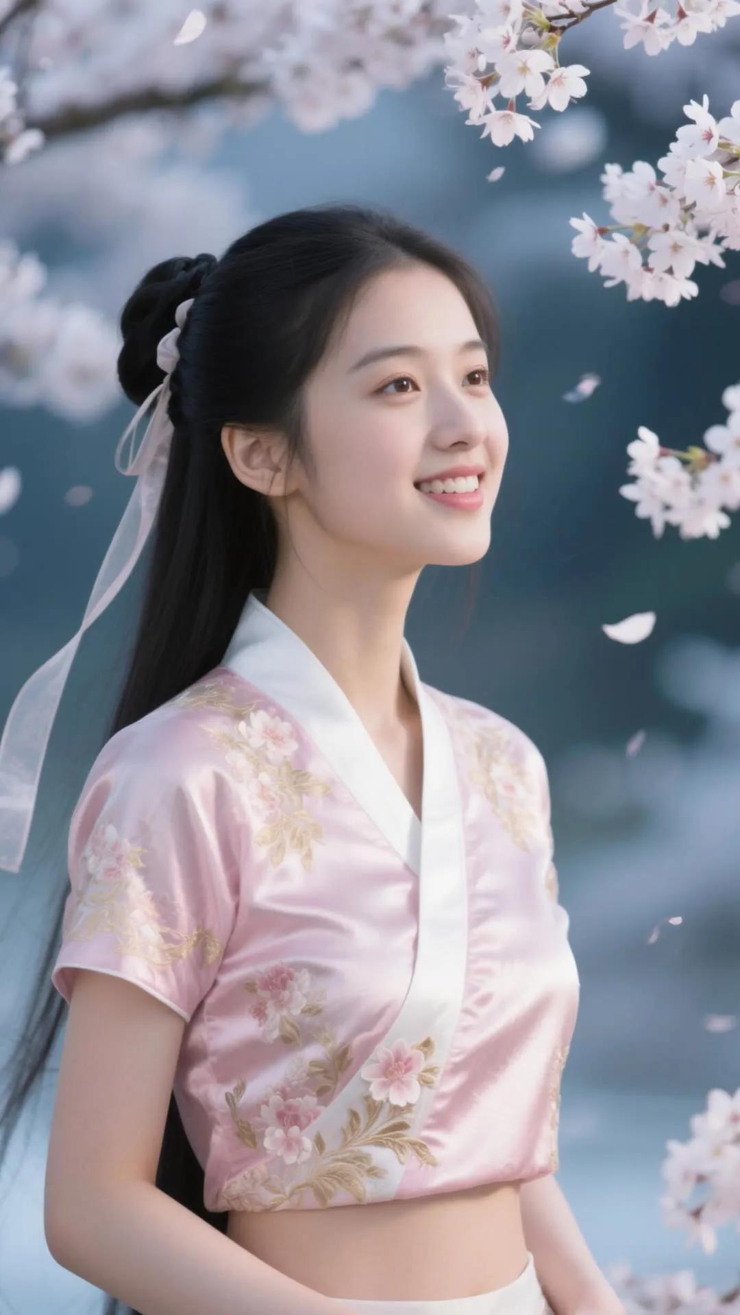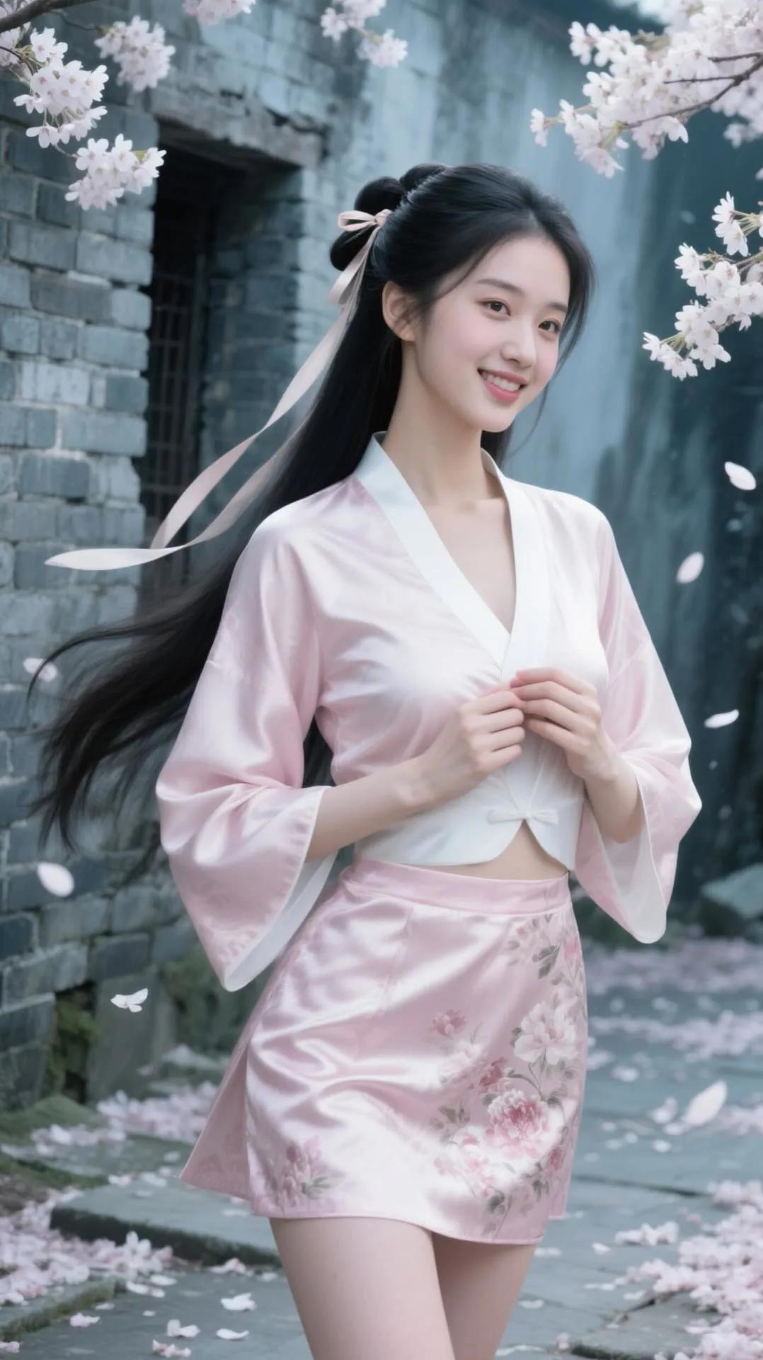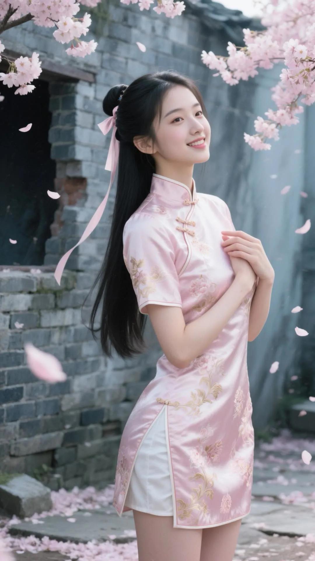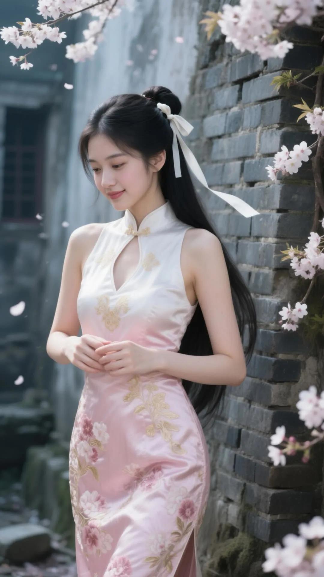古风少女与樱花墙的浪漫邂逅🌸✨
