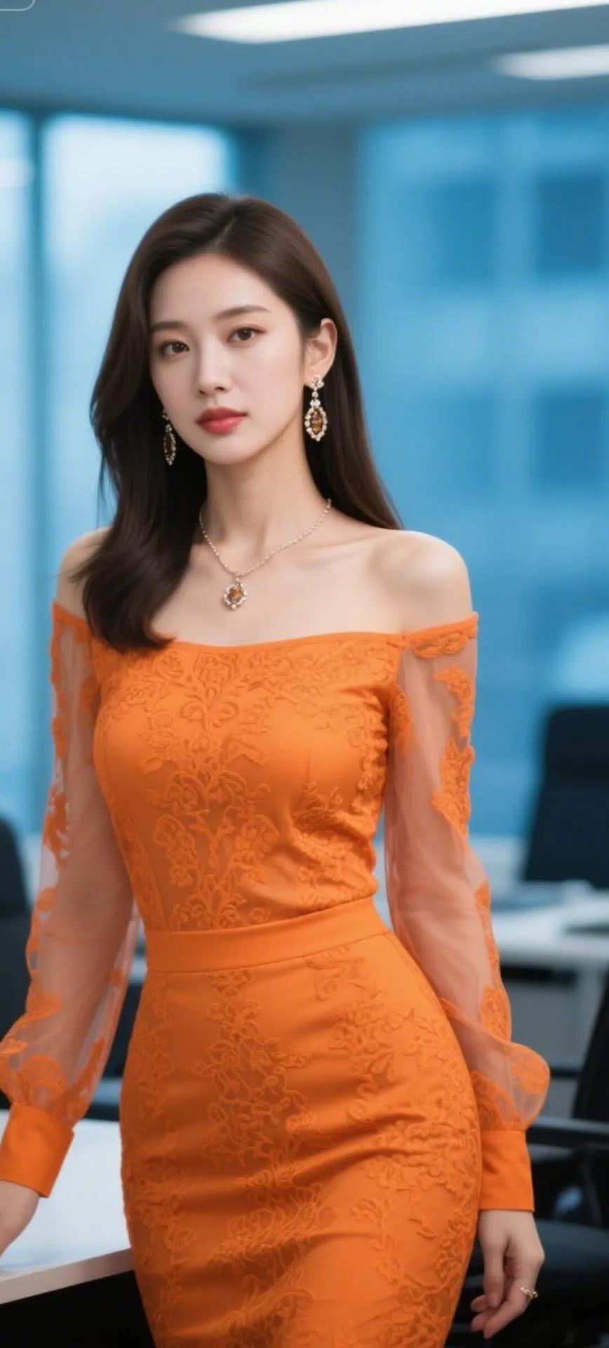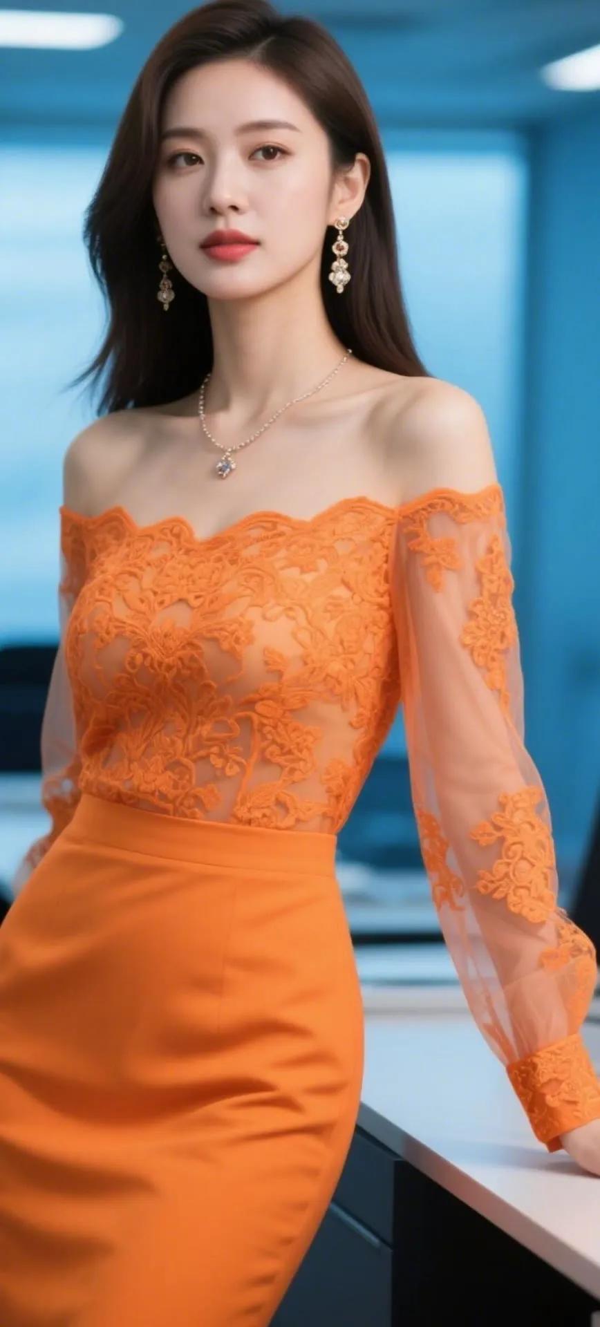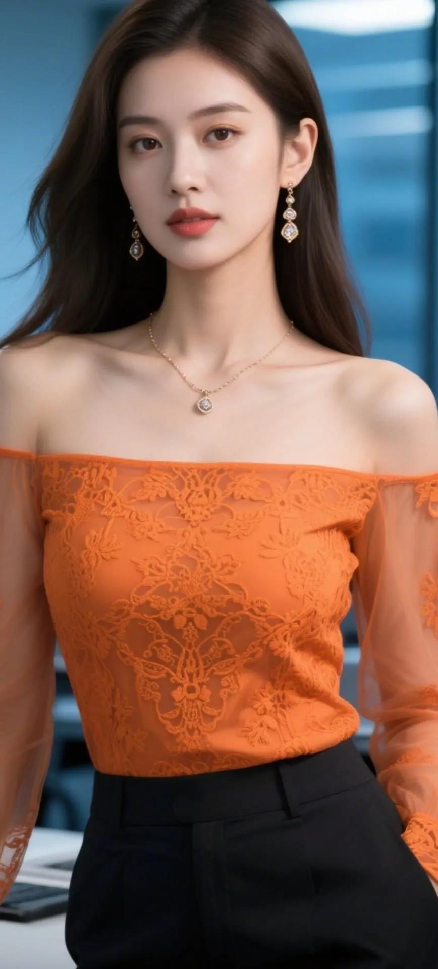 她美得优雅又高级,乌黑秀发高盘成精致发髻,侧颜线条如流水般柔美。白色衬衫勾勒出纤