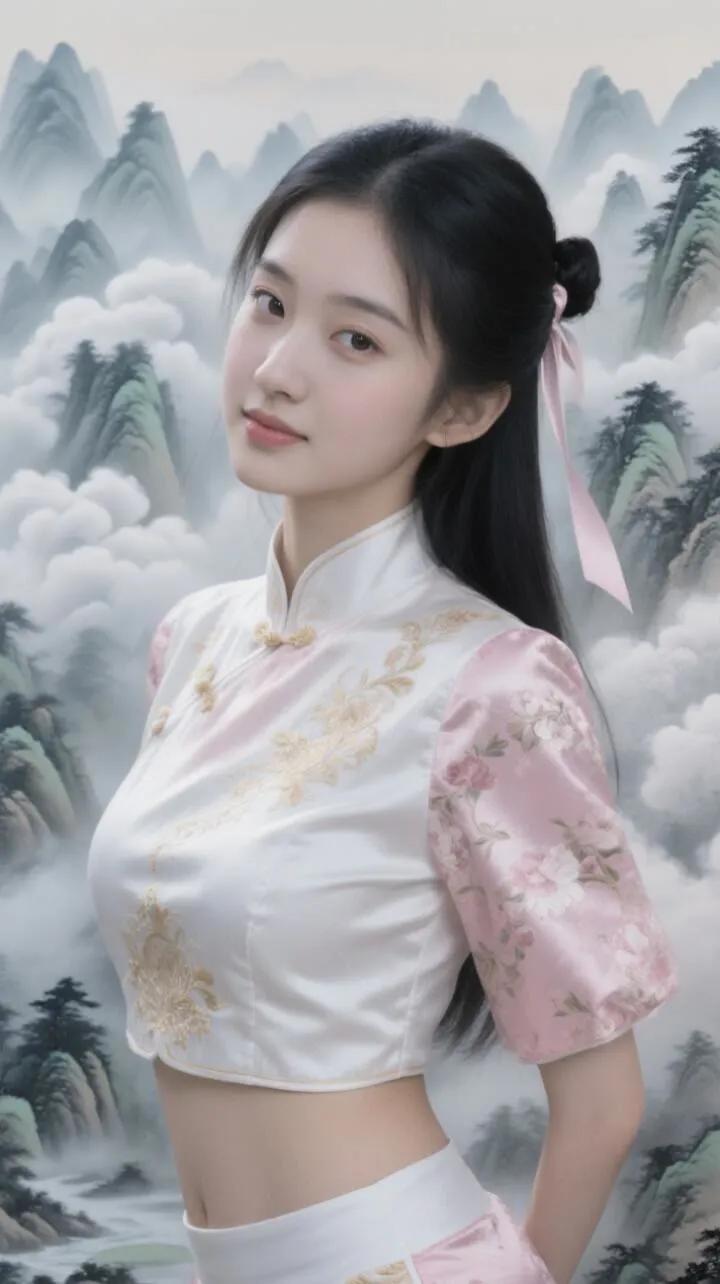 她如春日清晨的暖阳,温柔又明媚。乌黑长发编成松散麻花辫垂落肩头,几缕碎发随风轻扬