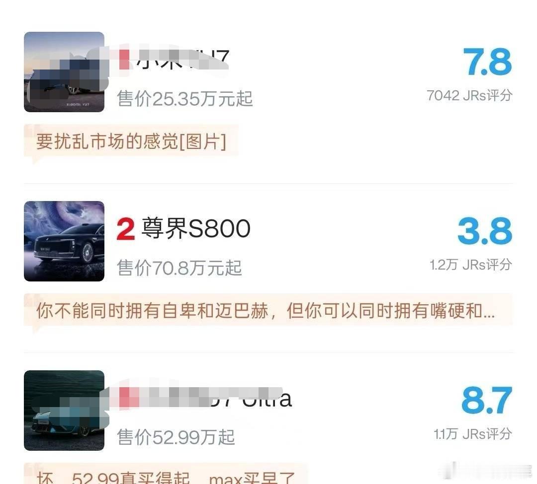 回看一下某扑平台上尊界S800的评分,那些人当时的狂欢显得尤为可笑。。。到头来只证明了一件事:自己的意见一文不值。🙈