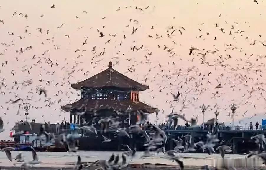 世界为你倾倒现在来青岛,必然要喂一下来自西伯利亚的海鸥,栈桥打卡超出片