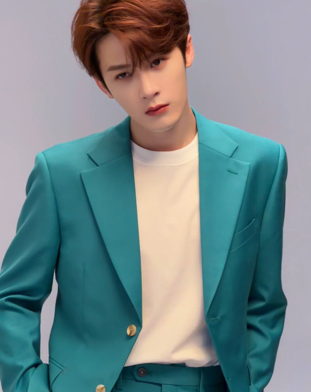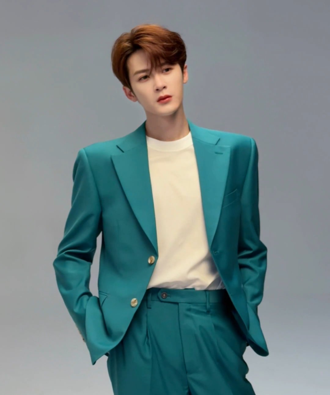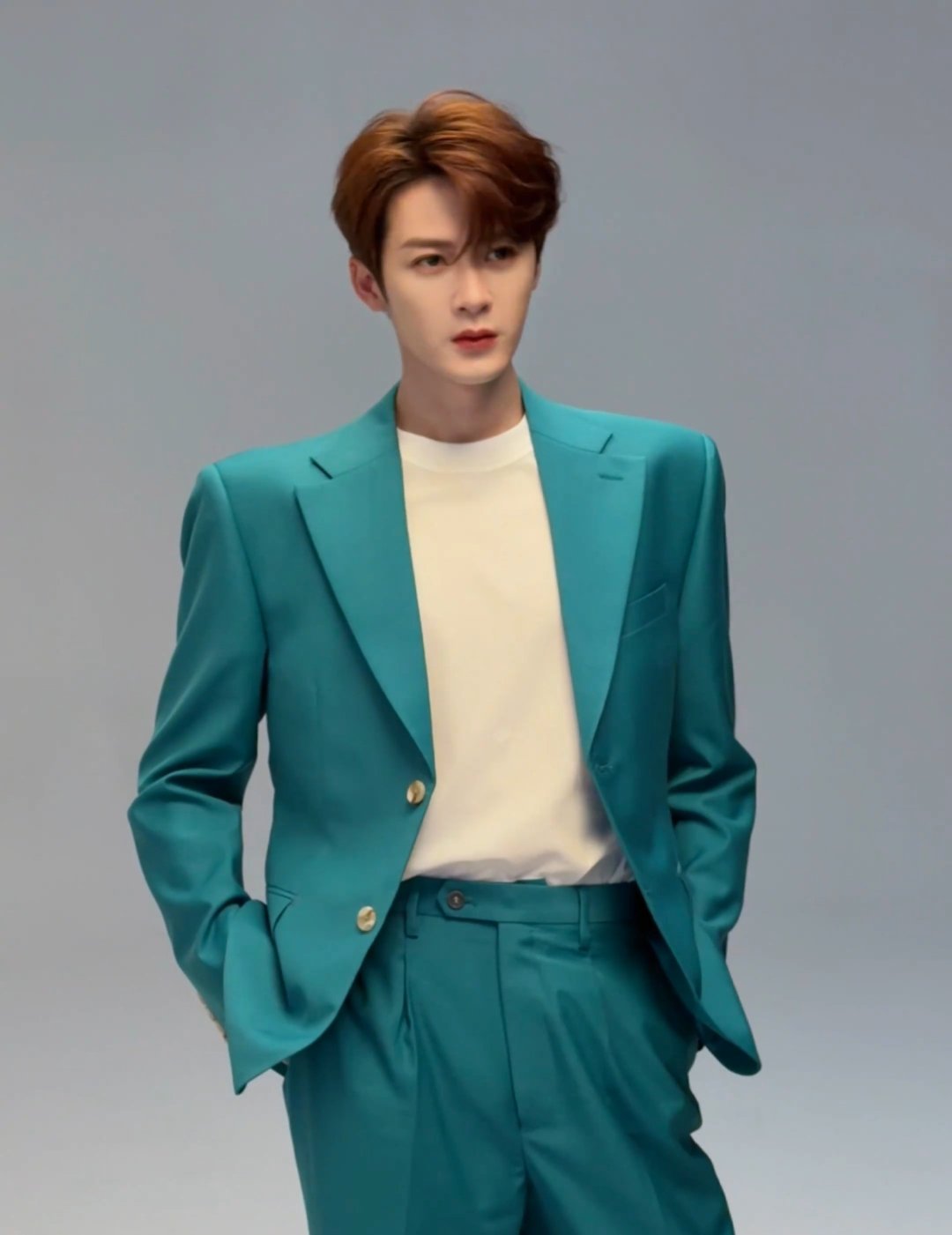 檀健次蓝色西装造型,内娱舒肤佳名不虚传好清爽