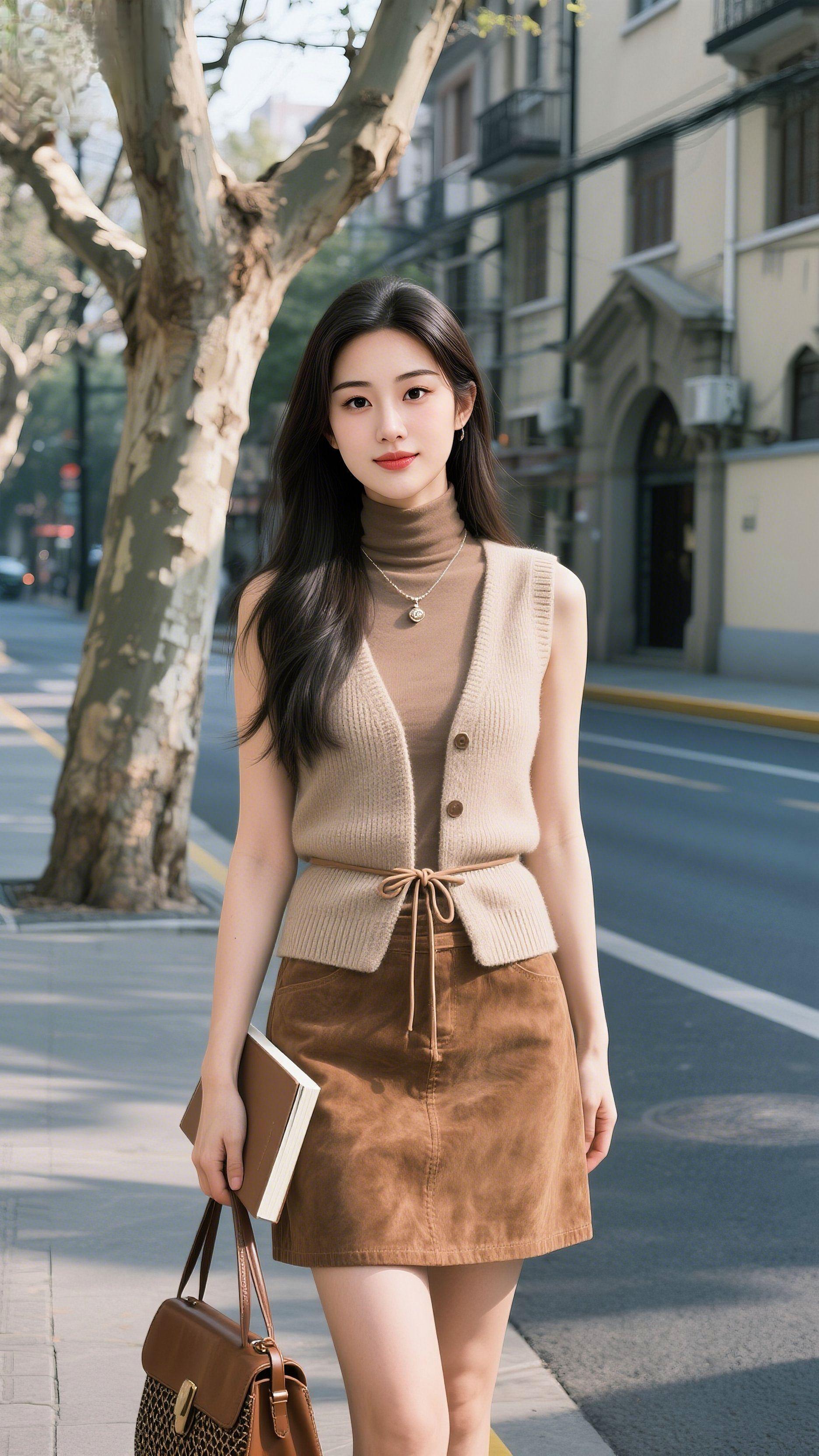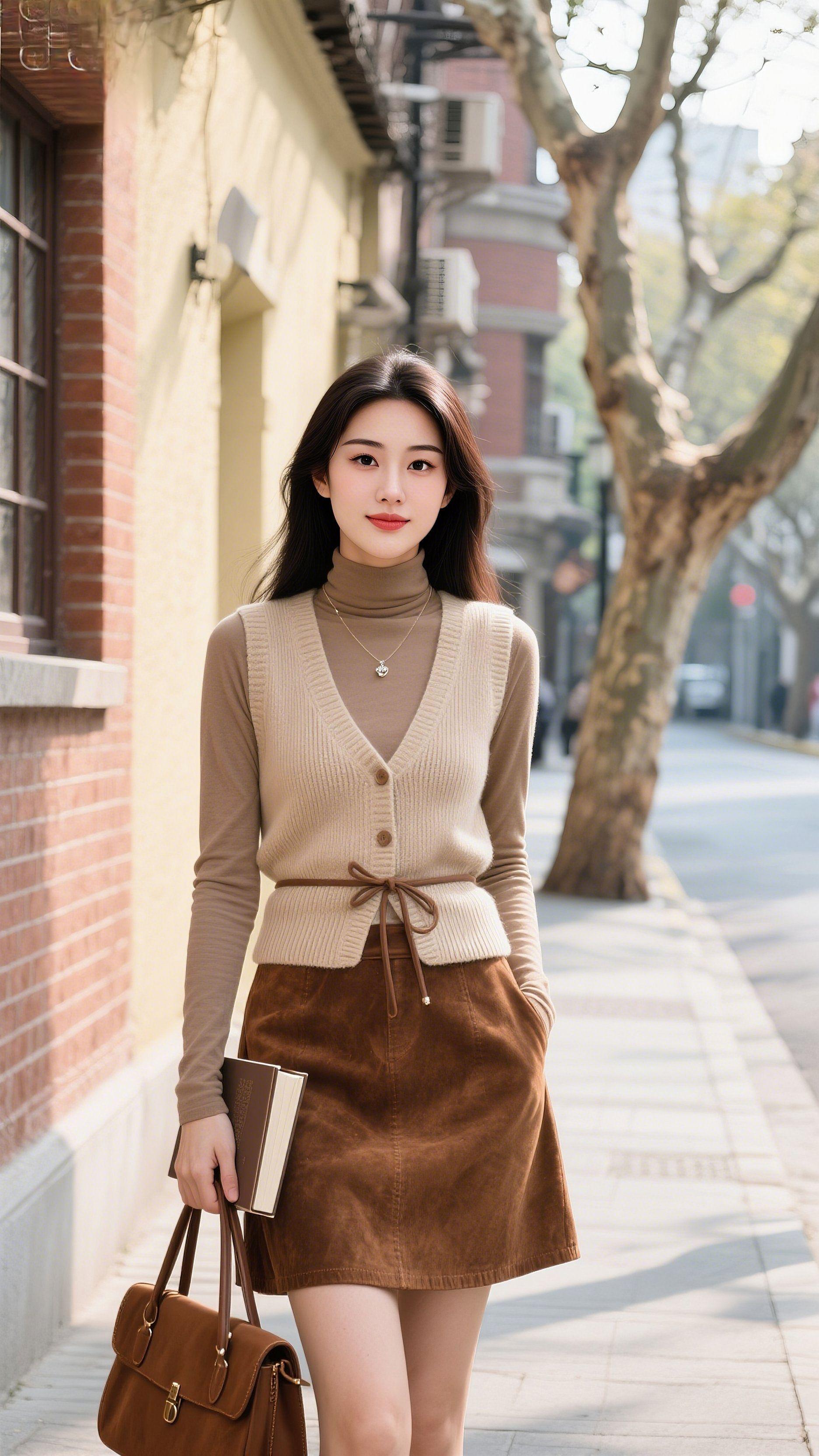 焦糖棕皮衣配黑皮裙,酷飒氛围感直接拉满~😎