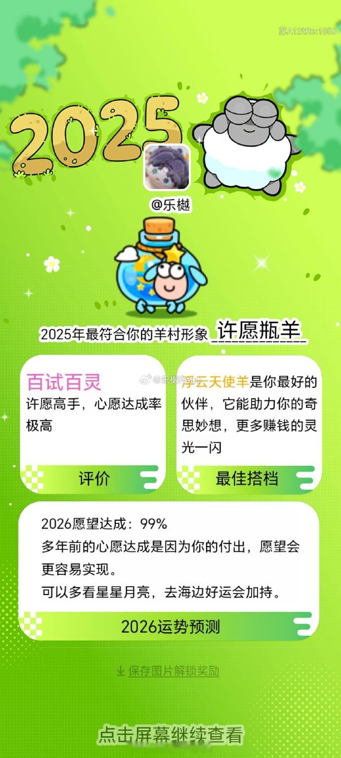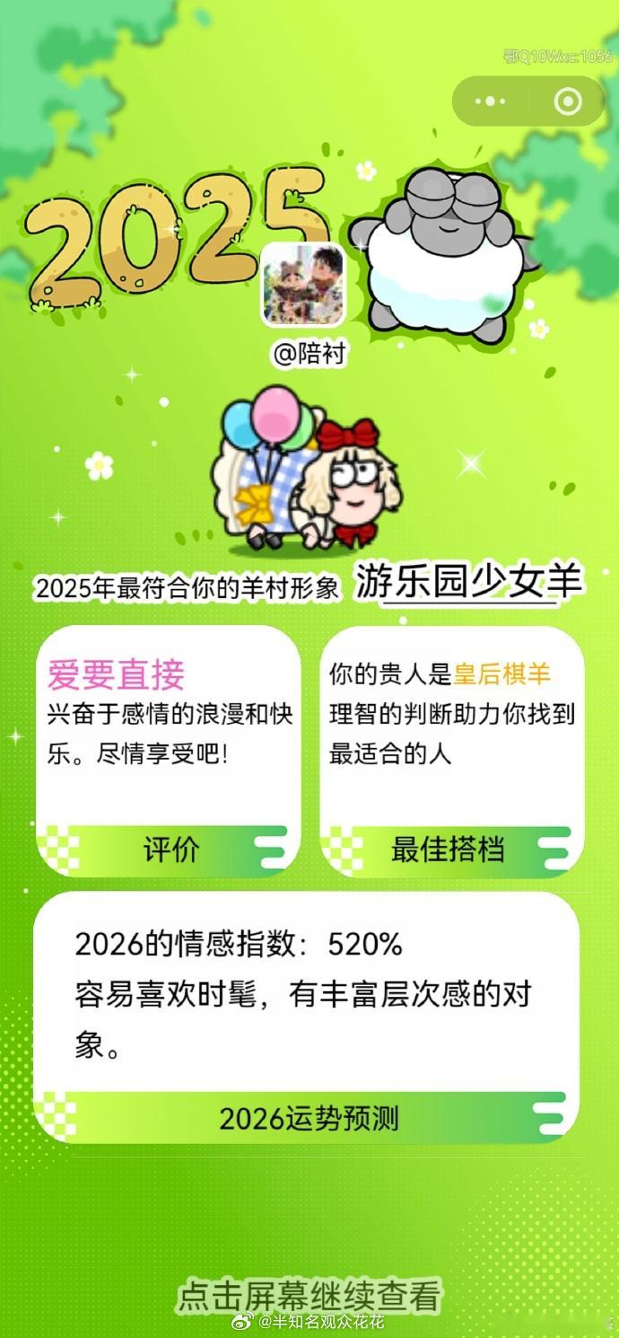 ber,羊了个羊竟然也有年度报告??不但有我的抓羊总结,竟然还有羊村形象和新年运势预测?别说,我怎么觉得真有点准啊…… 羊的背后必有高人指点!请问我的正缘浮云天使羊在吗?羊羊年度报告羊的年度报告有点东西