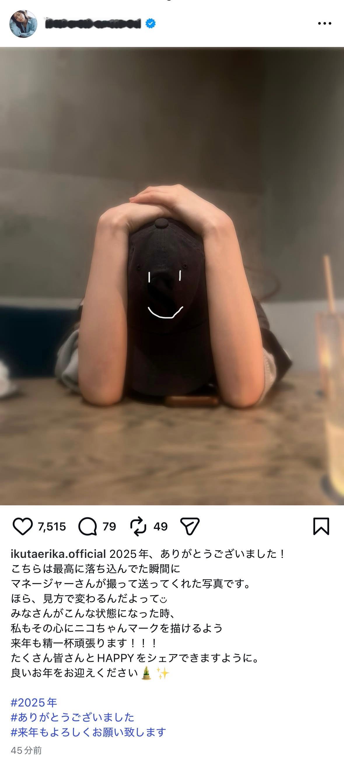 竹内希来里「今年もたくさん応援してくれてありがとうございました!2025年を1月