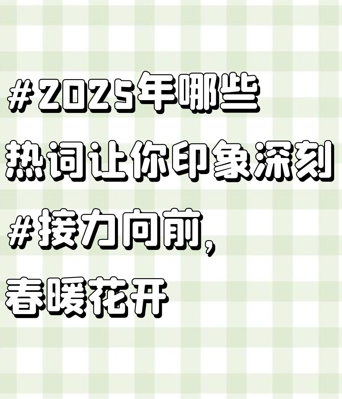 2025年“接力向前,春暖花开”这热词真的太戳我了。它就像寒冬后的暖阳,给人满满的希望。在这一年,很多行业都在困境中“接力向前”。比如新能源汽车领域,各大车企不断创新技术,一代接一代地研发更高效的电池和智能系统,就像一场没有终点的接力赛。而“春暖花开”也体现在生活的方方面面,旅游市场迎来了大复苏,人们走出家门,感受大自然的美好,就像春天里绽放的花朵。这热词不仅是一种表达,更像是2025年的一个生动注脚,让人难忘。