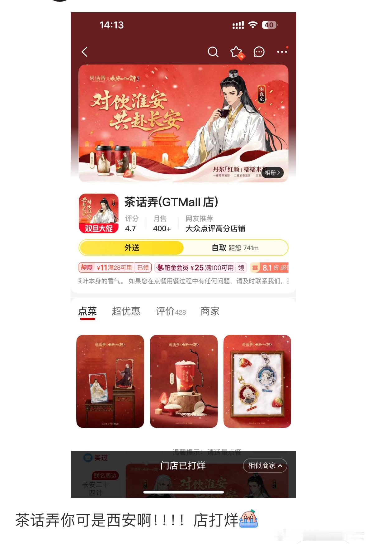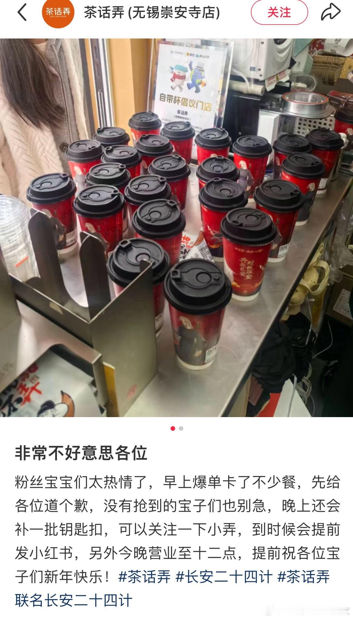 长安二十四计今天奶茶联名上线,线上一个小时就卖了5000,线下很多实体店爆单,做来不及暂停营业,这已经是长安二十四计的第n轮联名了,活人剧粉多,真爆剧是这样。
