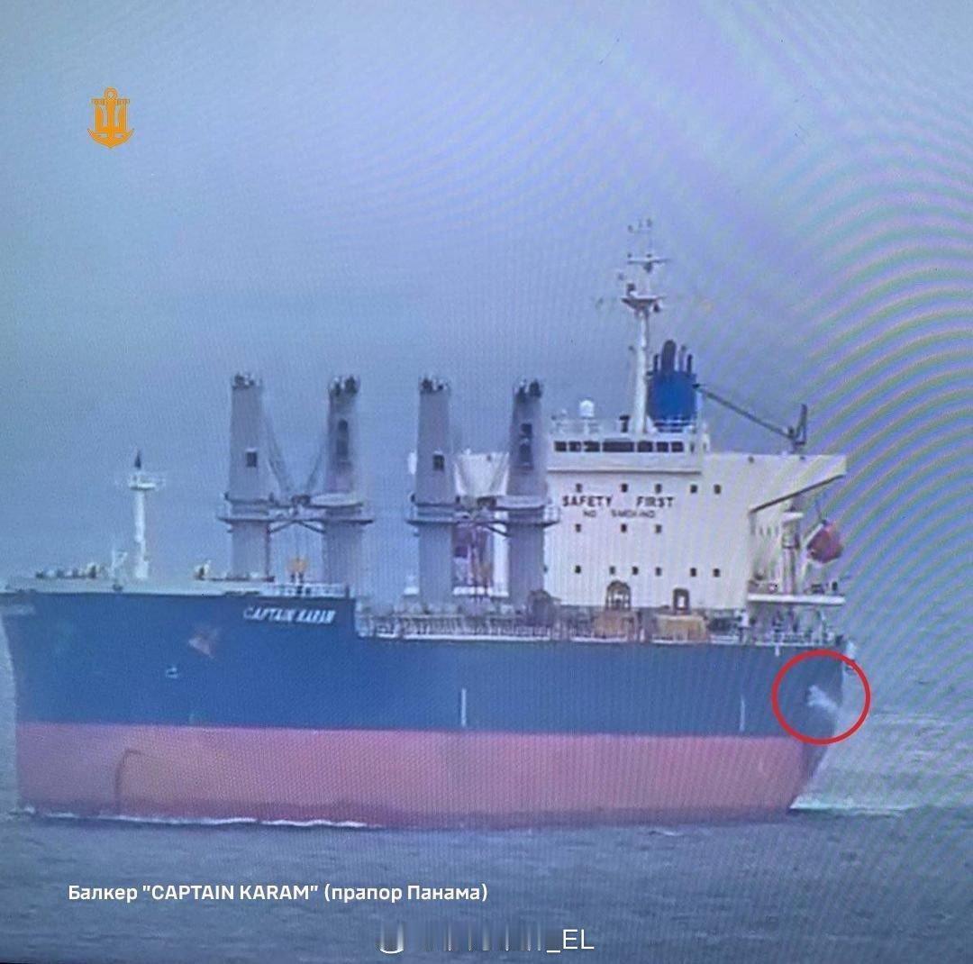 乌克兰敖德萨港,两艘运粮商船“Emmakris III”和“Captain Karam”号在港口进行装卸作业时遭到俄军无人机袭击而受损并有人员伤亡。