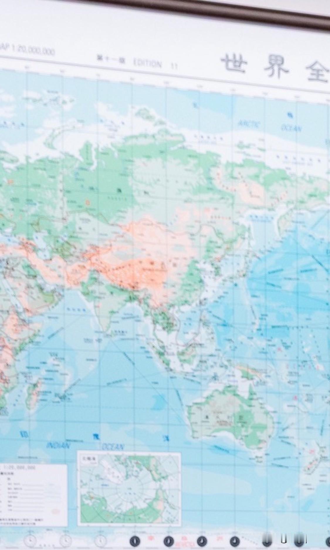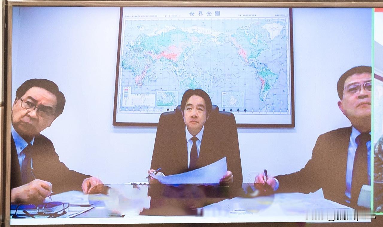 赖清德发布了开会应对大陆军演的照片,会议室的世界地图亮点很多。这张地图画的是秋海