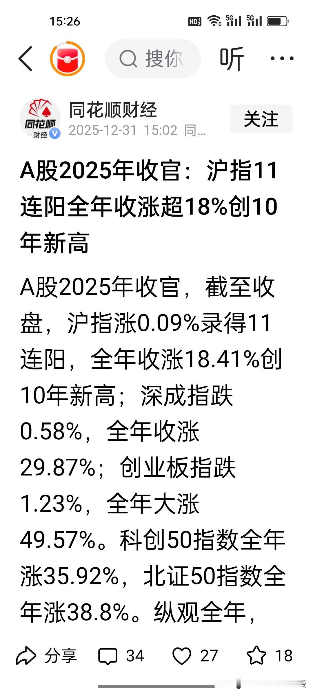 收官之日,沪指11连阳给了A股一个最完美的句号!很多人会问,明年主线是什么? 今天A股2025收官收11连阳,沪指报3968.84点全年涨超18%,创下十年新高,这波连涨不是以往普涨行情,而是国家硬核科技牛的演绎! 明年,北向+险资+公募多路主力依旧会围绕硬核科技的主线,科技牛已在路上!国产替代深化+AI算力爆发+商业航天崛起,三大核心赛道将持续领跑。这不仅代表宏大叙事,更是大国博弈的决胜主场!