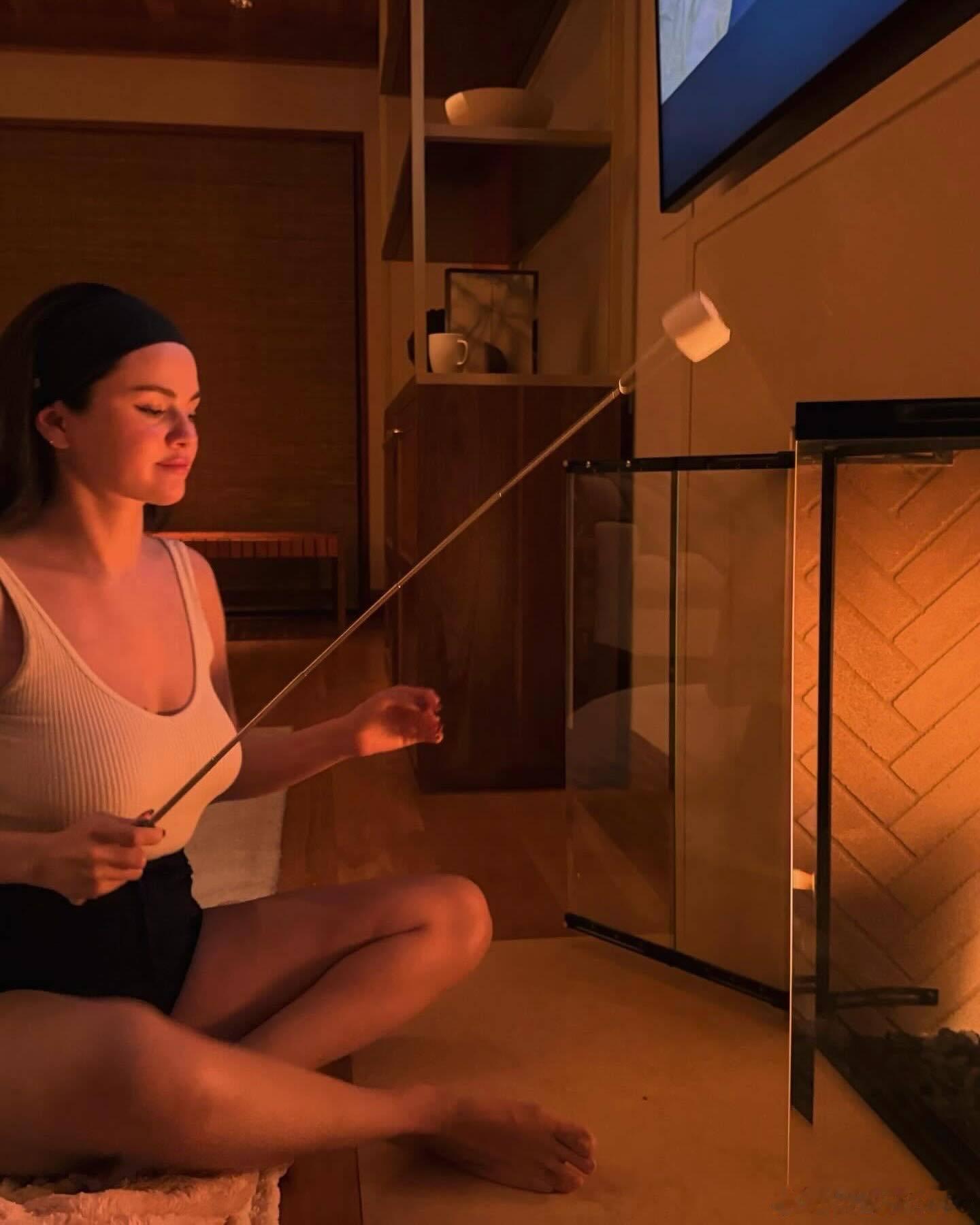 Selena Gomez赛琳娜戈麦斯的节日居家日常,护护肤烤烤棉花糖,享受假期的安静