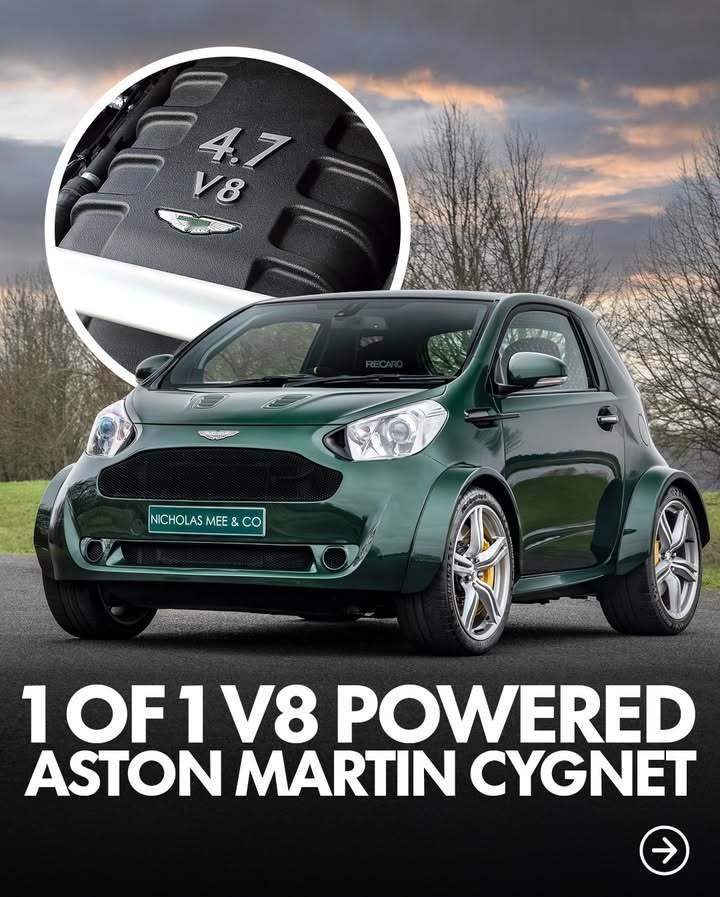 阿斯顿·马丁 V8 Super Cygnet 是一款由 Q by Aston Martin 为一位私人客户特别打造的车型。该车基于小巧的 Cygnet(基于丰田 iQ 车型打造)进行改造,并搭载了一台源自 Vantage S 的 4.7 升 V8 发动机,该发动机可产生 430 马力的动力。为了实现这一目标,阿斯顿·马丁几乎对车底的所有部件都进行了改造:加固底盘、Vantage副车架、悬挂系统、制动系统、后轮驱动以及完整的防滚架——同时保留了原 Cygnet 的车身面板。最高时速可达 170 英里,在 4.2 秒内即可从 0 加速至 60 英里/小时,推重比让一众超跑都汗颜