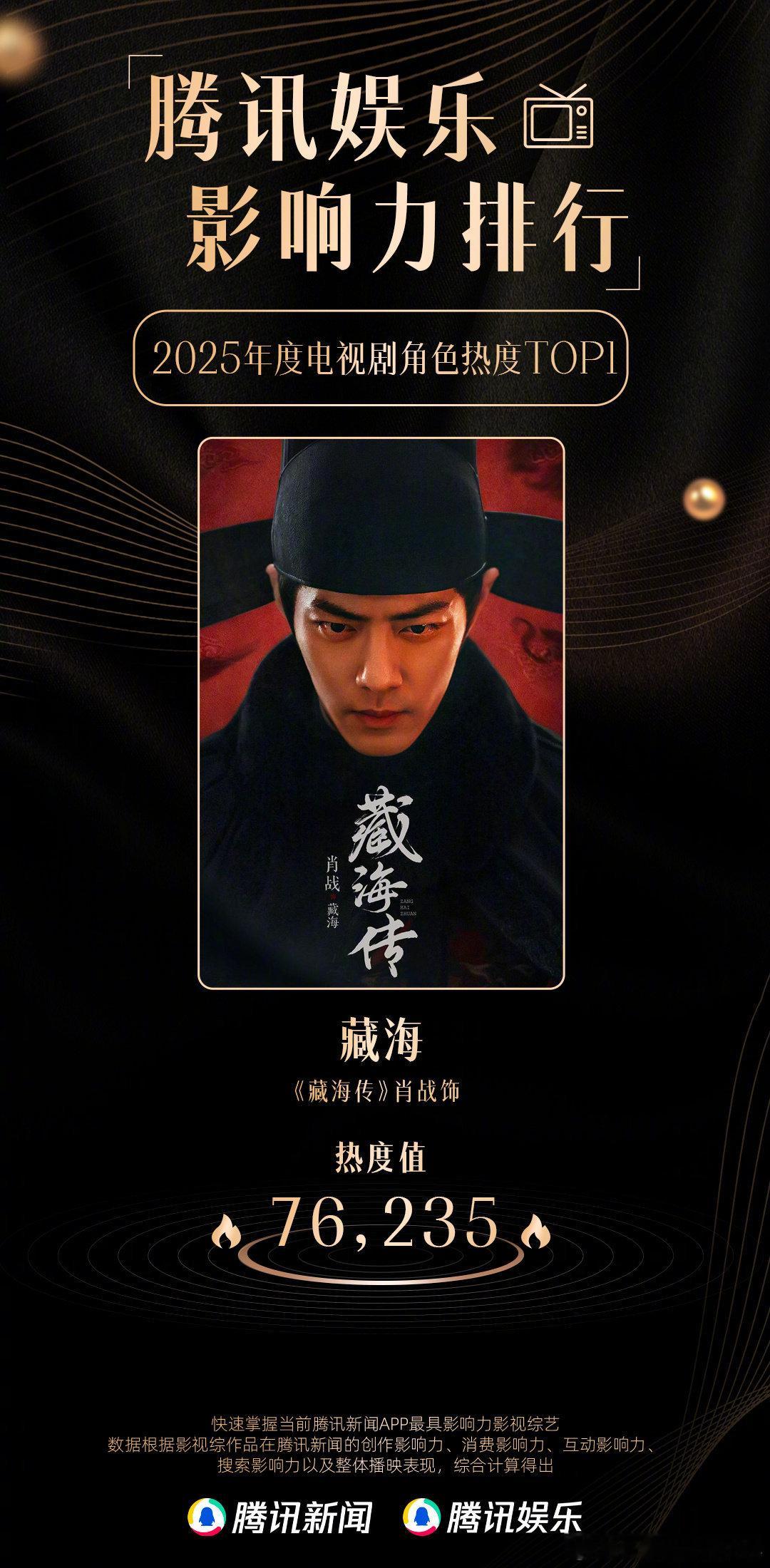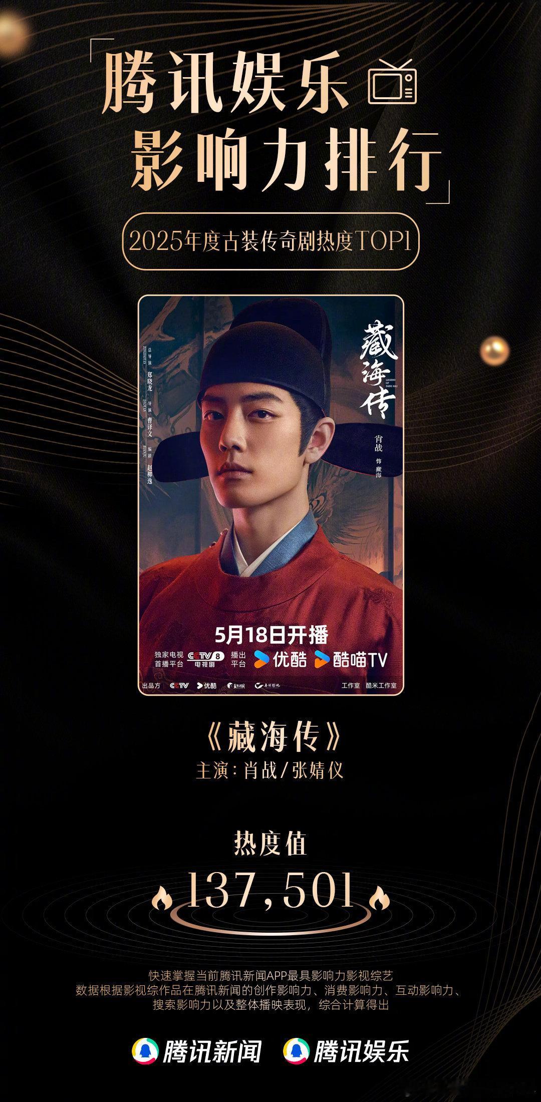 👏优酷再来捷报👖: 恭喜我家《藏海传》荣获腾讯娱乐影响力排行榜2025古装传奇剧top1和2025年度电视剧热度top3!恭喜藏海荣获腾讯娱乐影响力排行榜2025年度电视剧角色热度top1人民日报认证肖战藏海传为海外爆款2025剧集热度top10腾讯娱乐2025年度影响力排行 人民日报认证肖战藏海传为海外爆款