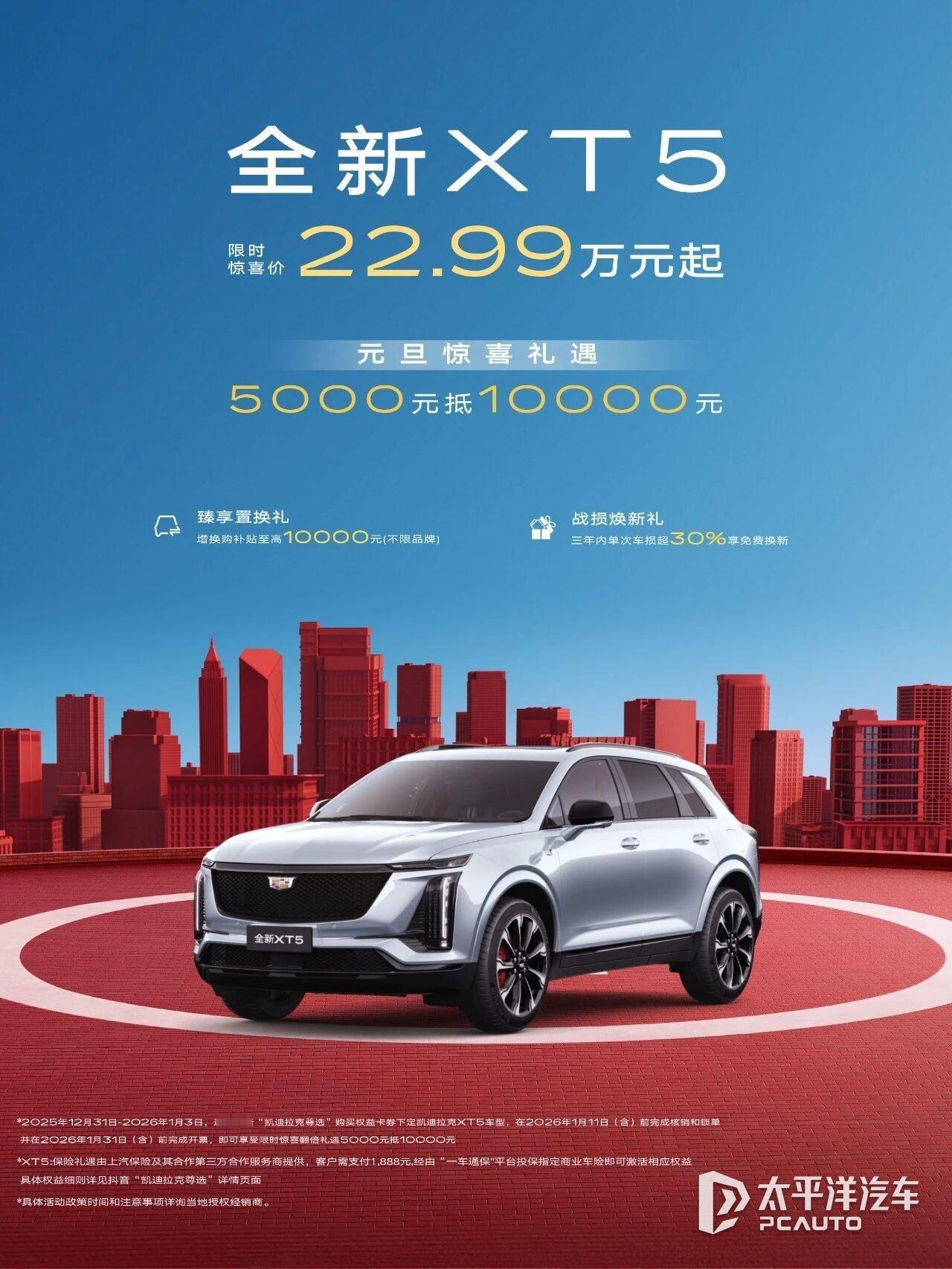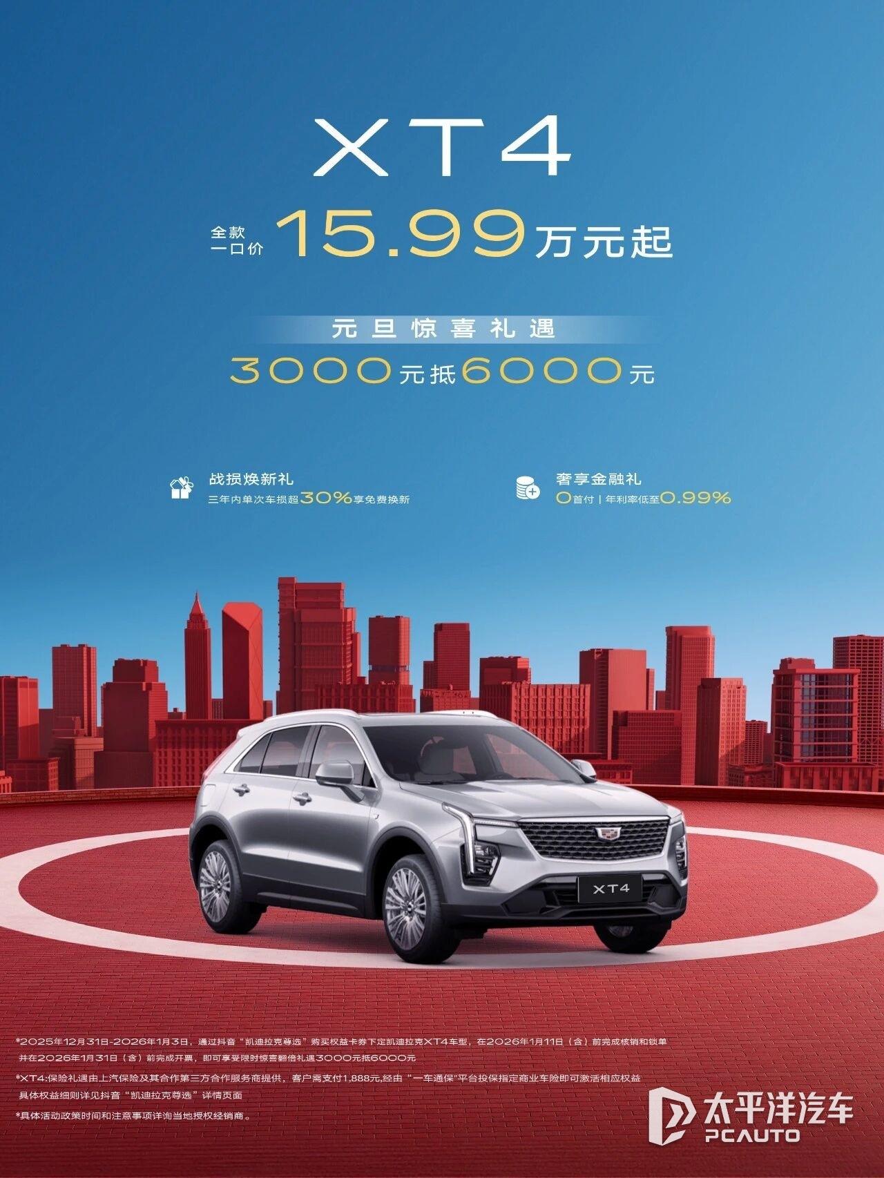 豪华品牌也扛不住了?凯迪拉克元旦限时优惠,这波“以价换量”玩得够狠![哆啦A梦吃惊] 核心优惠政策: 至高5000元可抵15000元 三年内单次车损超30%享免费换新 0首付/年利率低至0.99% 重点车型限时惊喜价: 全新CT5售19.99万元起 XT4全款一口价15.99万元起 全新XT5限时惊喜价22.99万元起 新CT6全款一口价28.99万元起 这波降价,诚意确实拉满了。15.99万买XT4,28.99万买CT6,对于想入手豪华品牌的朋友来说,确实是个不错的窗口期。这个“骨折价”的凯迪拉克,你们觉得香不香?评论区聊聊!