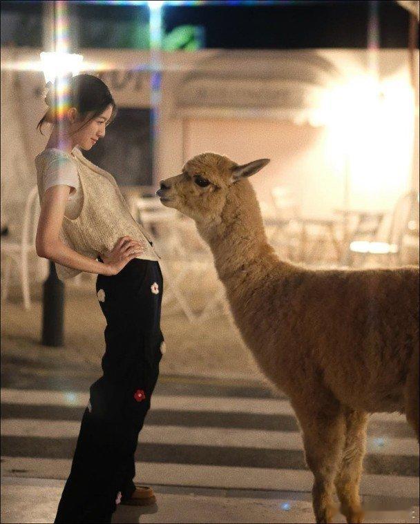 視后蔡思貝近日在社交平台分享一輯靚相,相中她與多隻羊駝合照,更擺出與它們同款的可