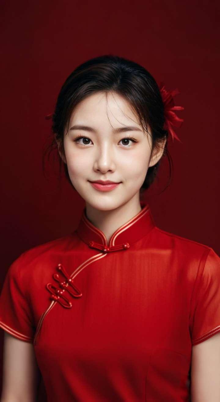 AI扩图AI红裙浅笑