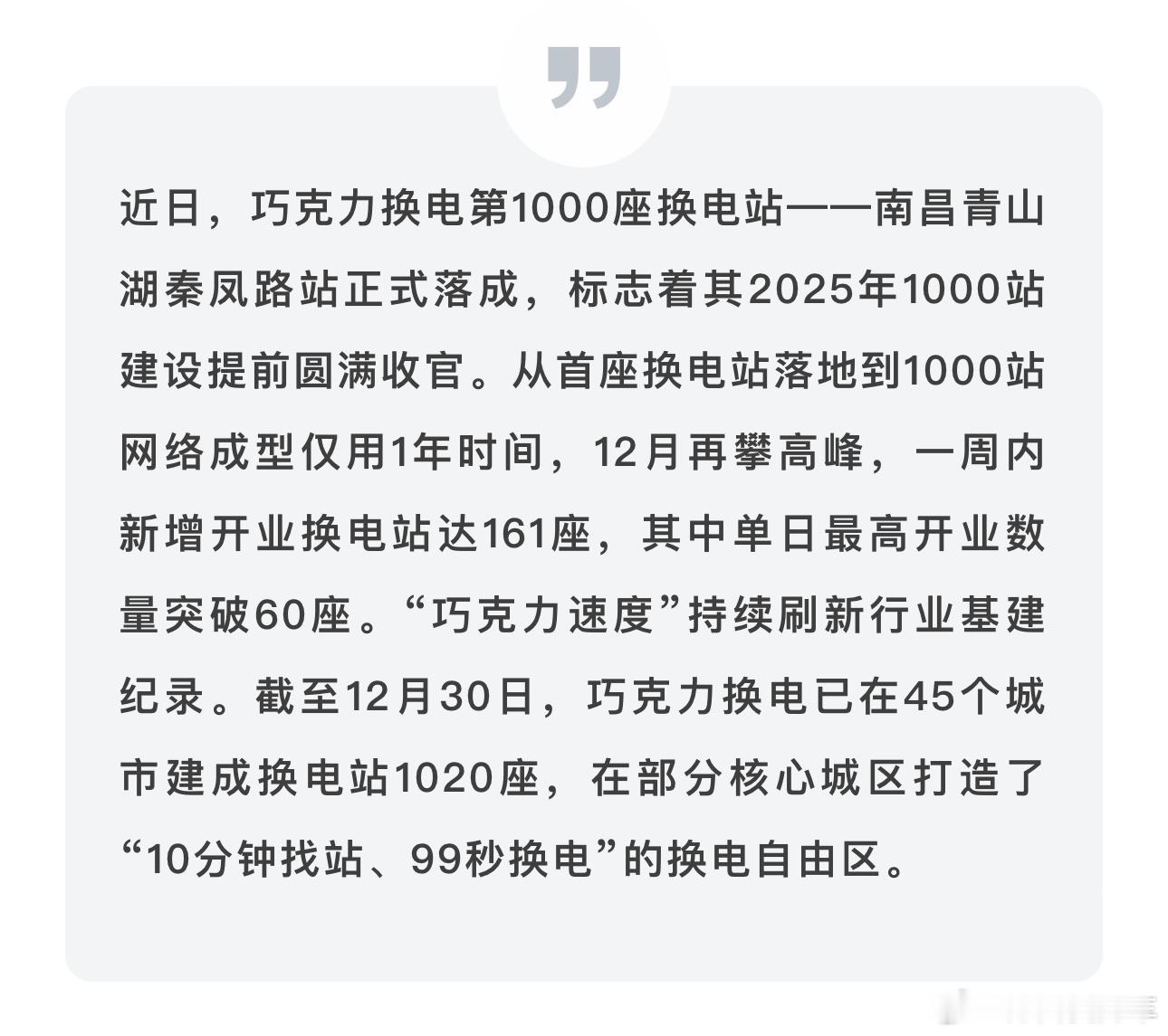 巧克力换电今年千站目标达成,明年目标建成 3000 座换电站,接下来适配的新车型