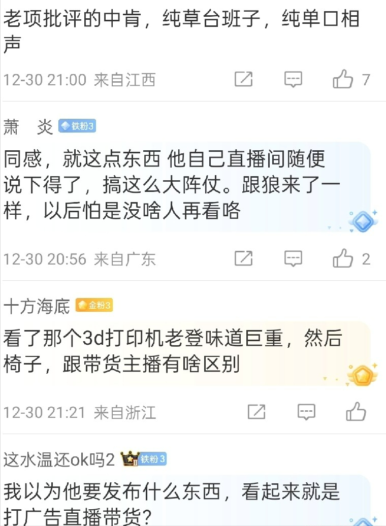 要知道他卖票的时候,把这场大会吹得天花乱坠,把大家的期待值拉满,结果现场全是槽点,所谓的“科技创新分享”,压根就是全程硬凹的广告带货现场。