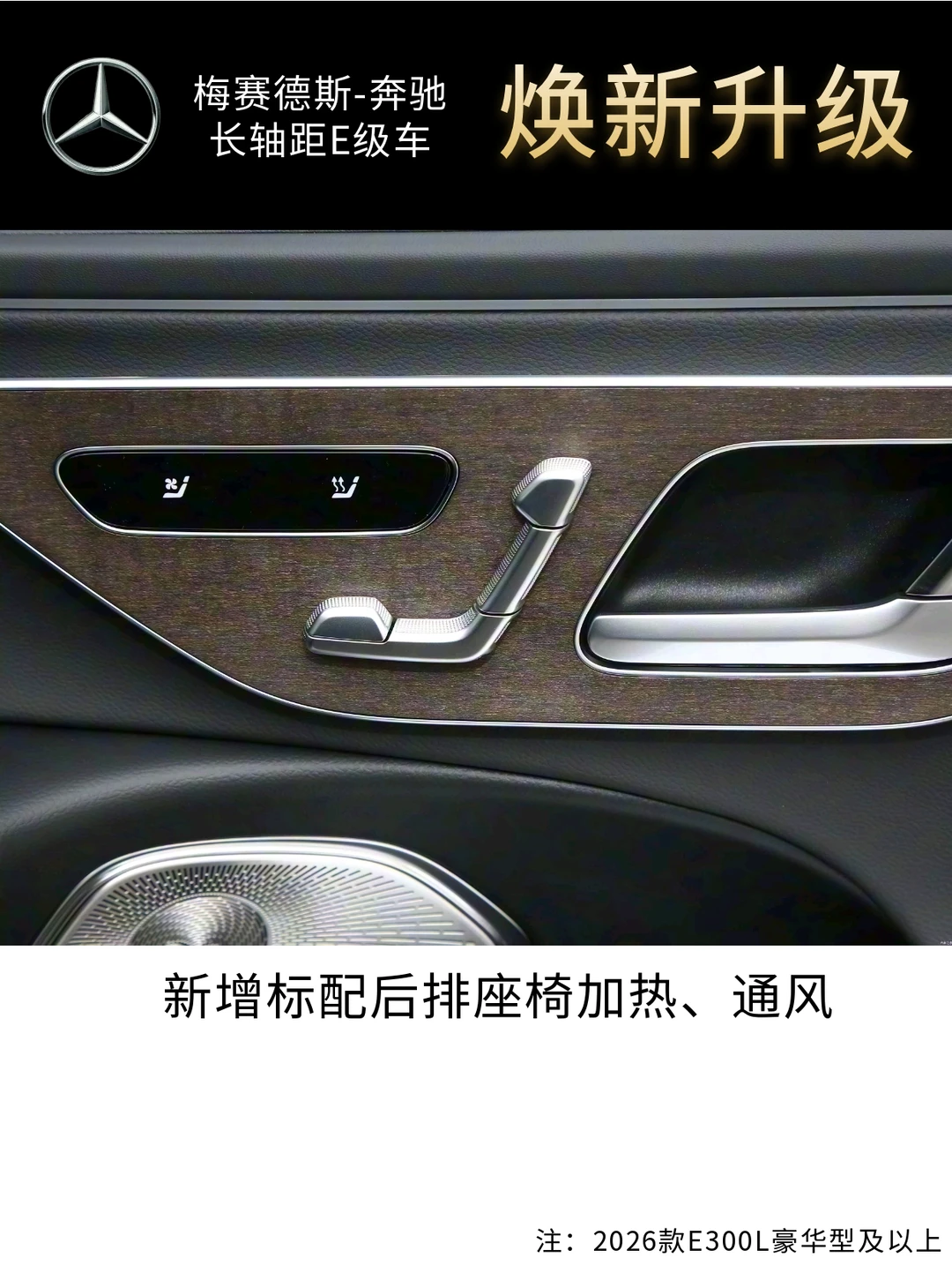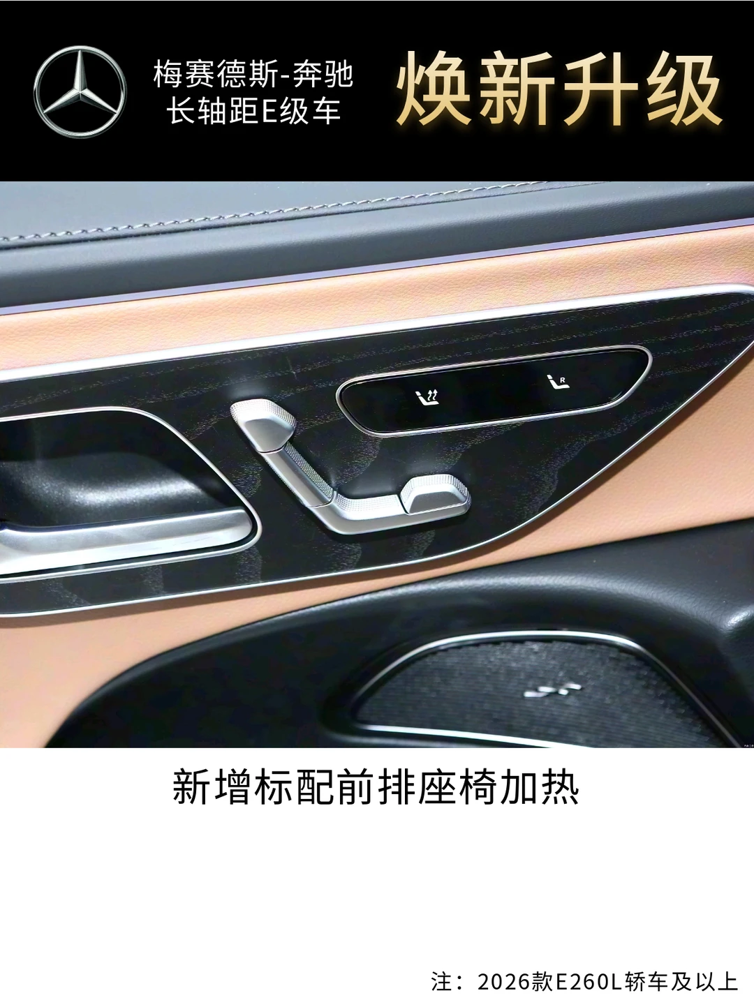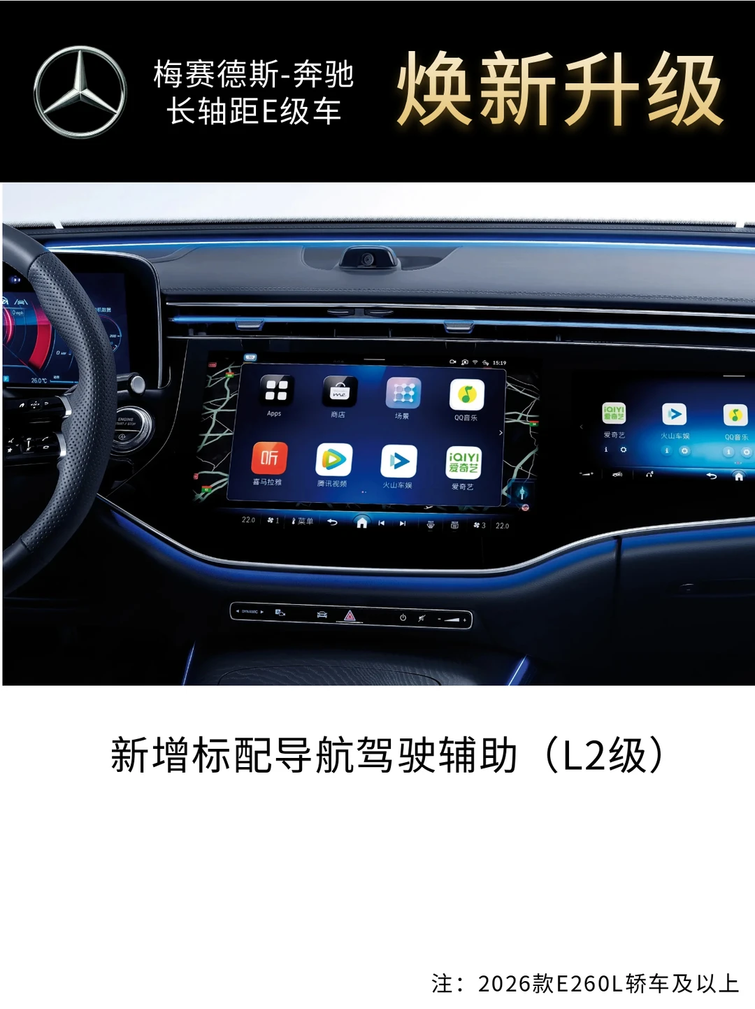 时间来到了2026年,梅赛德斯-奔驰E级轿车又迎来了焕新升级,具体升级如下: