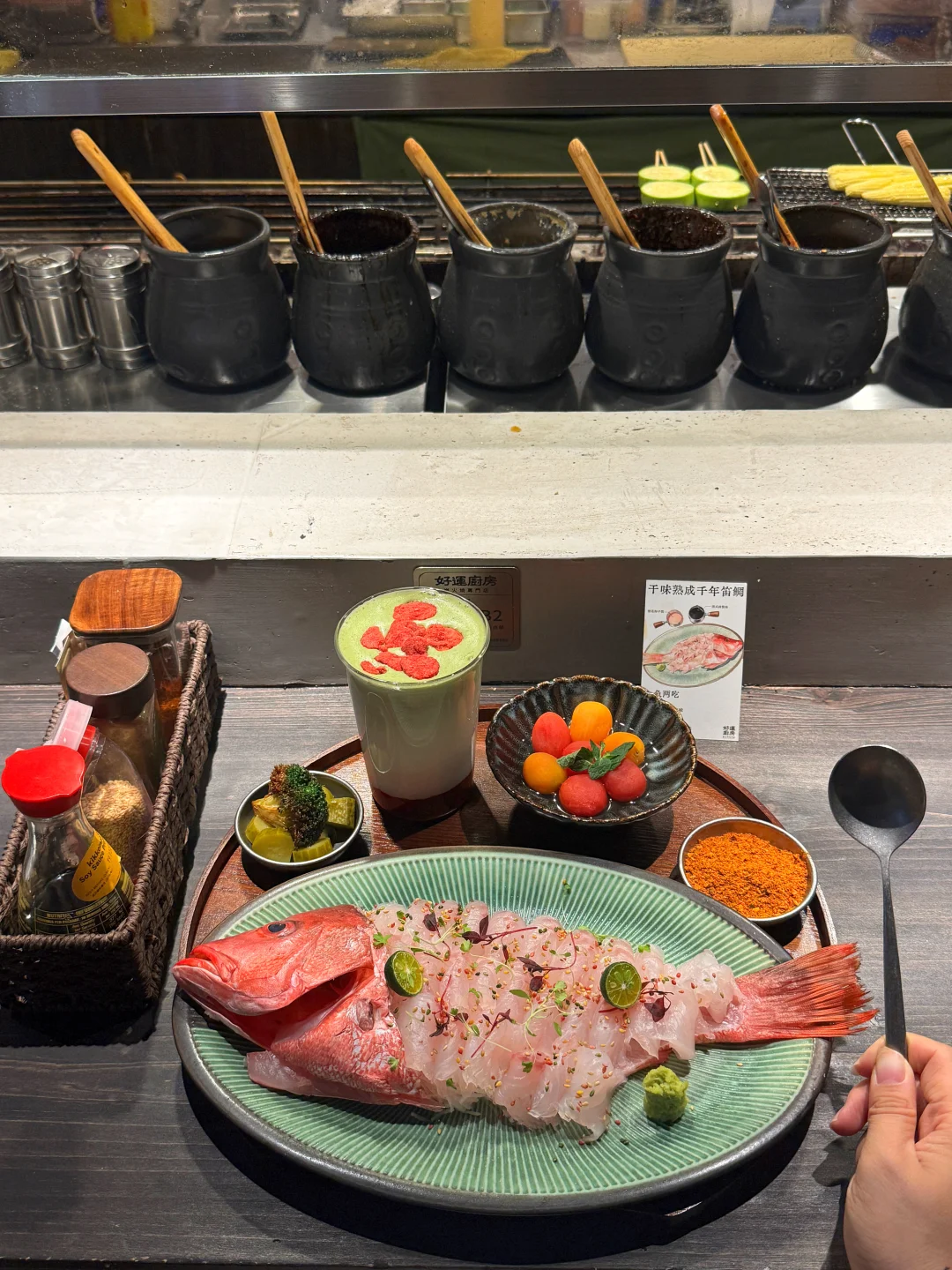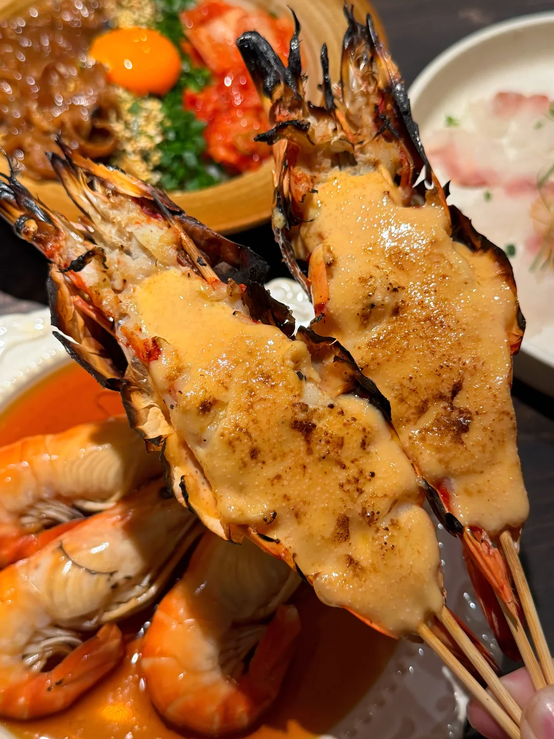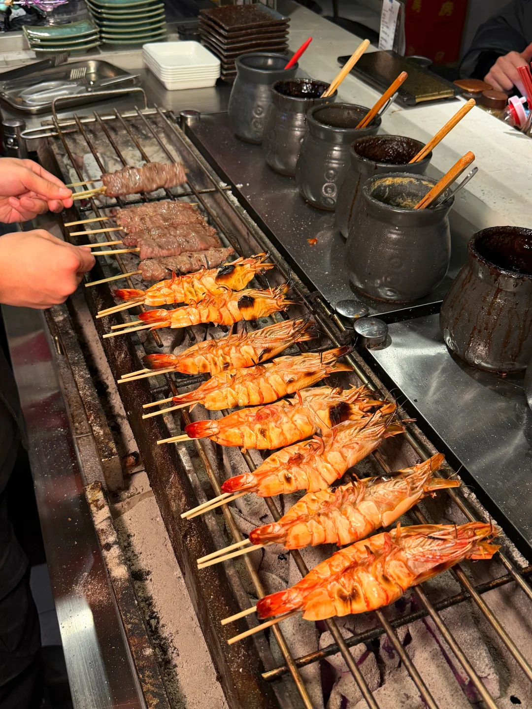 这周来吃第三次了!日系板前的氛围感! 主打湘味烧鸟,炭烤的调味好nice! 叫:好运厨房,就在运达里,地铁口边上。 每次必点泡菜肥牛拌饭、熟成千年笛鲷、四目海鲜、 明太子黑虎虾…都吼吼吃!饮品也巨好喝!!