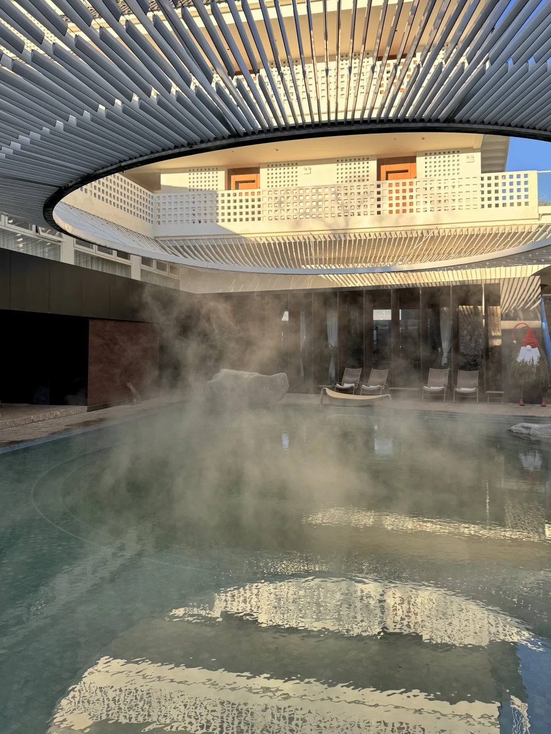 终于来了洱海的源头 — — 洱源温泉之乡🩵 找了一个在牛街的美丽温泉酒店住了2晚,没想到舒服到没出过门。 这次住的酒店很有设计感,很多的线条设计美的很巧妙,另外各个角落里的植物和树都好美,有时候看着以为在巴厘岛。 除了天然温泉大泡池,还有2个比较隐私的小泡池,像我们比较i,住的这几天,很好地保持了陌生人之间的社交距离哈哈 另外比较惊喜的是,酒店的饭好好吃🤤没想到最后一日三餐全在酒店里解决了,早晨的米线饵丝、中午的白族菜、晚上的火锅🍲,每一顿都好好吃!! 待着舒服到根本不用出门了哈哈