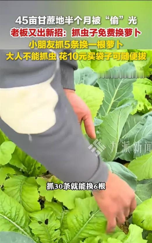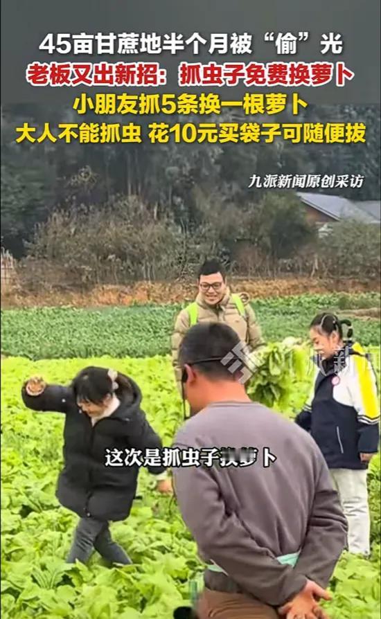 太有头脑了!四川一老板搞“偷甘蔗”活动,45亩甘蔗地半个月就被一扫而空,见这法子有利可图,他立马另辟蹊径,又推出新活动,这次换成了抓虫子换萝卜。小朋友只要抓满5条虫,就能免费换一根萝卜,抓够30条直接能换6根;大人不能参与抓虫换萝卜,得花10块钱买个专用袋子,就能进萝卜地随便拔随便装,一个袋子差不多能装八九斤萝卜。网友纷纷点赞:这个农民老板是真有生意头脑! 这位老板姓陈,之前在自家地里搞“偷甘蔗”的趣味活动,本意是想靠这种新奇的玩法吸引游客,没想到大家参与热情特别高,45亩甘蔗地短短半个月就被游客们拔了个精光。陈老板不仅没亏,还靠门票和周边消费赚了不少,这让他发现了乡村体验游的商机,转头就把目光放到了旁边的萝卜地,琢磨出了抓虫换萝卜的新点子。 萝卜地里因为虫害,菜叶上总爬着不少菜青虫,雇人除虫还要花工钱,陈老板索性把这事变成了互动游戏。小朋友们听说抓虫子能换萝卜,一个个提着小篮子在菜地里找得不亦乐乎,既体验了农活的乐趣,又能拿到免费的萝卜,家长们也觉得这比单纯买萝卜有意思多了。而大人们想拔萝卜,就得花10块钱买个袋子,别看这钱不多,可来的游客多了,积少成多也是一笔不小的收入,更关键的是,游客们自己拔萝卜,还省了陈老板雇人采摘的成本。 有意思的是,陈老板定的规则里,大人不能参与抓虫换萝卜,不少网友调侃他“精得很”,知道大人抓虫效率高,要是都来免费换,自己就得亏了。可也正是这种小限制,让活动更有层次感,小朋友有专属的参与方式,大人也有合适的消费选择,把不同年龄段的游客都照顾到了。 其实陈老板的做法,戳中了现在乡村旅游的痛点。很多农村的农产品愁销路,要么是价格卖不上去,要么是没人知道,而陈老板没有走传统的售卖路子,而是把农产品和体验感结合起来,让游客在玩的过程中消费,既卖出了甘蔗和萝卜,又让自家的田地成了“网红打卡点”。这种思维方式,比守着田地等收购商上门要灵活得多。 不过也有人觉得,陈老板的活动虽然有创意,但要是把控不好游客的数量,可能会对菜地造成过度踩踏,反而影响后续的收成。但从目前的情况来看,陈老板显然考虑到了这一点,用袋子限定拔萝卜的量,用抓虫的方式控制小朋友的活动范围,既让游客玩得开心,又不会对农田造成太大破坏。 说到底,农民想要把农产品卖好,光靠埋头种地不行,还得有灵活的经营思维。陈老板的这波操作,不仅让自己的农产品实现了增值,也给其他农户提了个醒:乡村里的土地和农活,本身就是宝贵的旅游资源,换个思路,就能挖出不一样的商机。 各位读者你们怎么看?欢迎在评论区讨论。