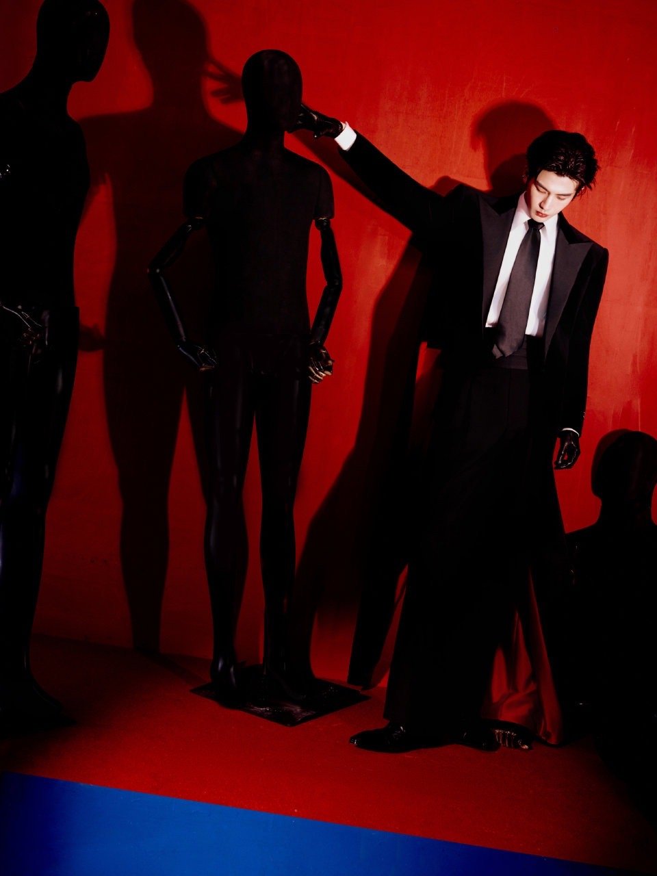 张凌赫湖南卫视跨年演唱会这组活动大片着实精彩,有被惊喜到!背景以红黑双色为主导,一抹深蓝点缀。身上的长款西装大衣剪裁利落,西裤皮鞋搭配得当,皮手套戴与不戴完全是两种气质,戴上危险气息则更浓。置景与布光也用心,红地毯就是专门为这位大帅哥准备的。风格大赏时尚灵感解读