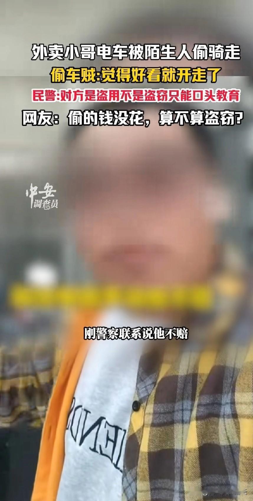 无锡警方火了。 原因是一个外卖小哥的车被偷了,他去报警。警方找到偷车贼后,偷车贼说他看着车好看,就骑出去逛了一圈。然后他就把车扔在路边了。 帽子叔叔就对外卖小哥说,这不算是偷窃,因为他没有私下买卖你的车,这就是偷用。只能口头教育。 外卖小哥因为车被偷耽误了送餐,他想让偷车人赔偿他的误工费。结果帽子叔叔打电话告诉他那个人不愿赔。 这件事传到网上后,网友们都炸锅了,有人去无锡警方的评论区里去评论,无锡公安的评论区都关了。 有网友说,照无锡警方的意思,我去金店拿了金首饰,过年的时候带带,过完年还回去就不算偷了。 还有人说我明天就去偷个劳斯莱斯开开,找到我时我就还回去,也是借了。 对于这件事,你怎么看呢?