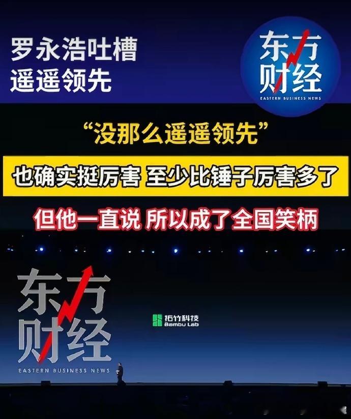 真当所有人都能给忽悠了?一个做什么企业都失败的人嘲笑国之重器?当然欠债在网上卖惨装作为了老百姓发声然后当嘴炮网红带货倒是挺成功。真当互联网没有记忆?笑死人还开了个充满广告的科技发布会一点科技都没有余承东:做无线通信,把华为市场份额做到了欧洲第一。做手机,把华为智能手机销量做到了全球第一,而且是“手和脚都被捆上了的情况下”。做汽车,月销量做到了中国新势力第一,而且均价超过了宝马和奥迪。罗永浩:做网站,被关闭;搞英语培训机构,失败;做手机,失败;做TNT工作站,失败;做子弹短信(聊天宝),失败;做电子烟,失败;推广抗菌材料,失败;做AR,2022年至今没发布啥;只有耍嘴皮子(教英语讲段子和直播带货)是成功的。罗永浩说遥遥领先成全国笑柄