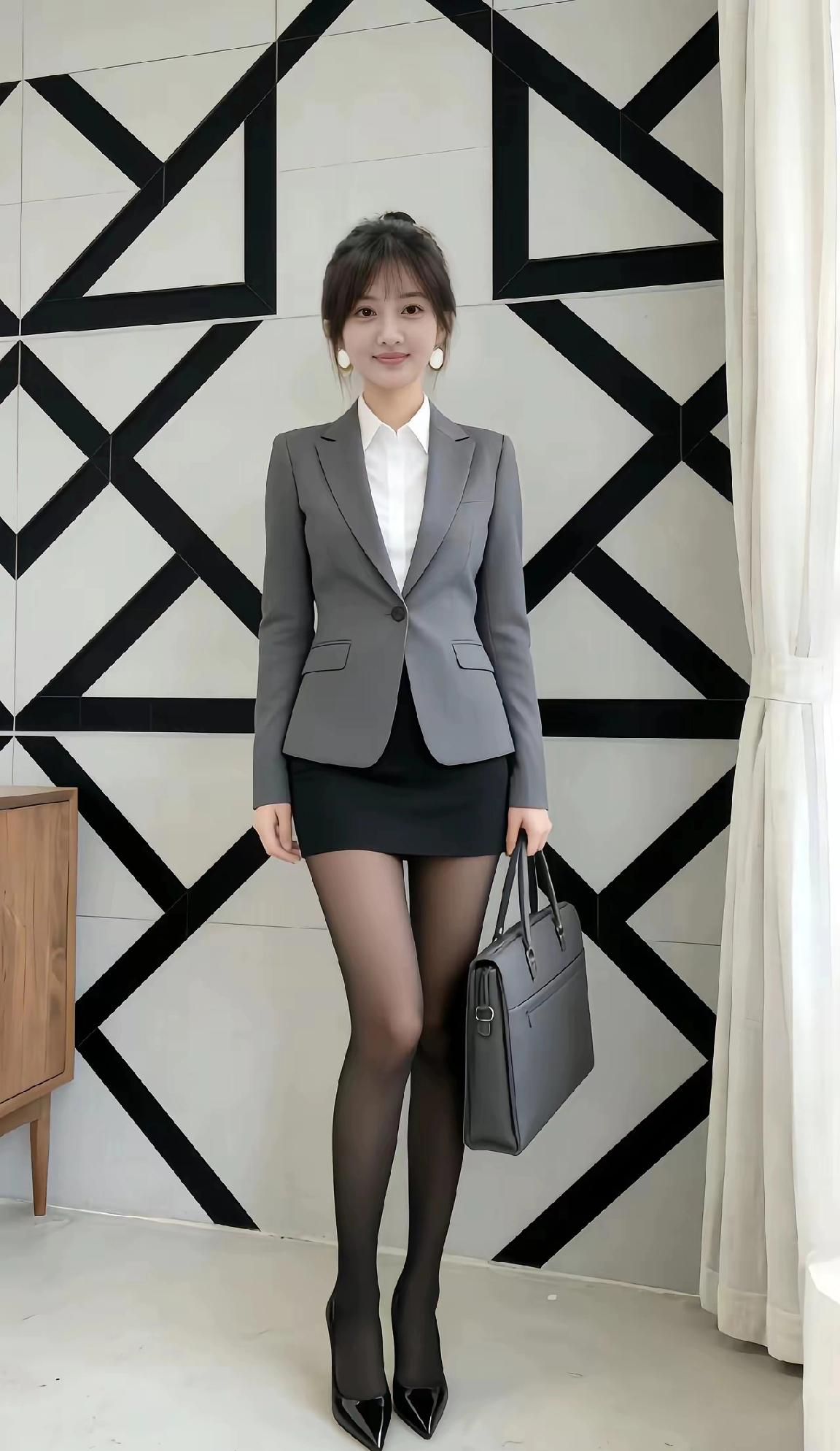 优雅职场风穿搭,黑色高跟鞋搭配灰色西装,尽显干练气质!