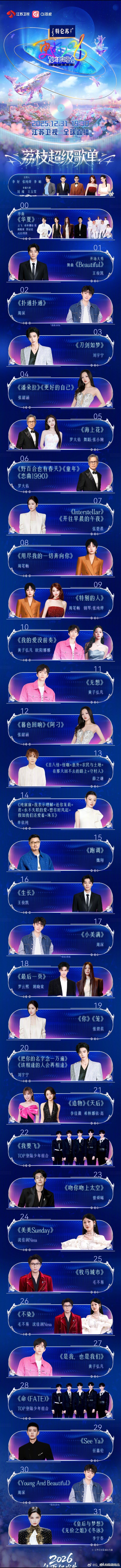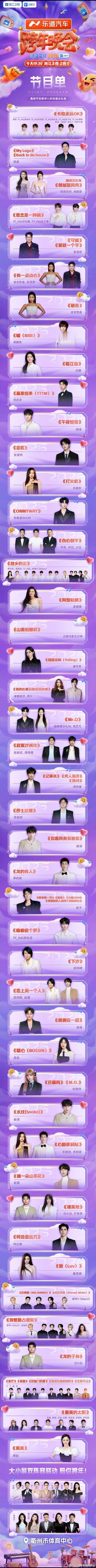看了一下已有的跨年演唱会节目单湖南看:王鹤棣《优雅》,《爱如潮水》没看见,是X秀