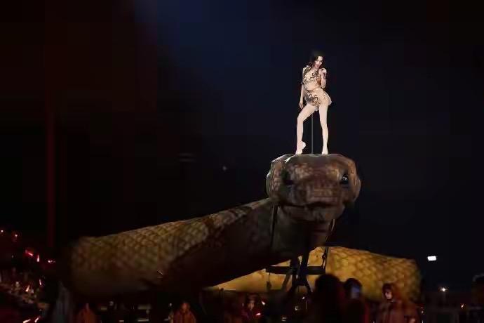 这一刻我理解了许仙看到白娘子真身那一刻有多恐怖了,蔡依林踩着蛇头出场,可谓是狠狠的给华语乐坛上了一课啊。 2025的最后一天,简直太绝了,这简直是一场视觉盛宴啊,蔡依林闭关三个月练就蛇舞,这条蛇整体长达30米,这程度太逼真了,这对在场的观众来说简直绝了,这哪是看演唱会啊,这就是在看一场电影。 此次蔡依林投入了3700万,也太值了。
