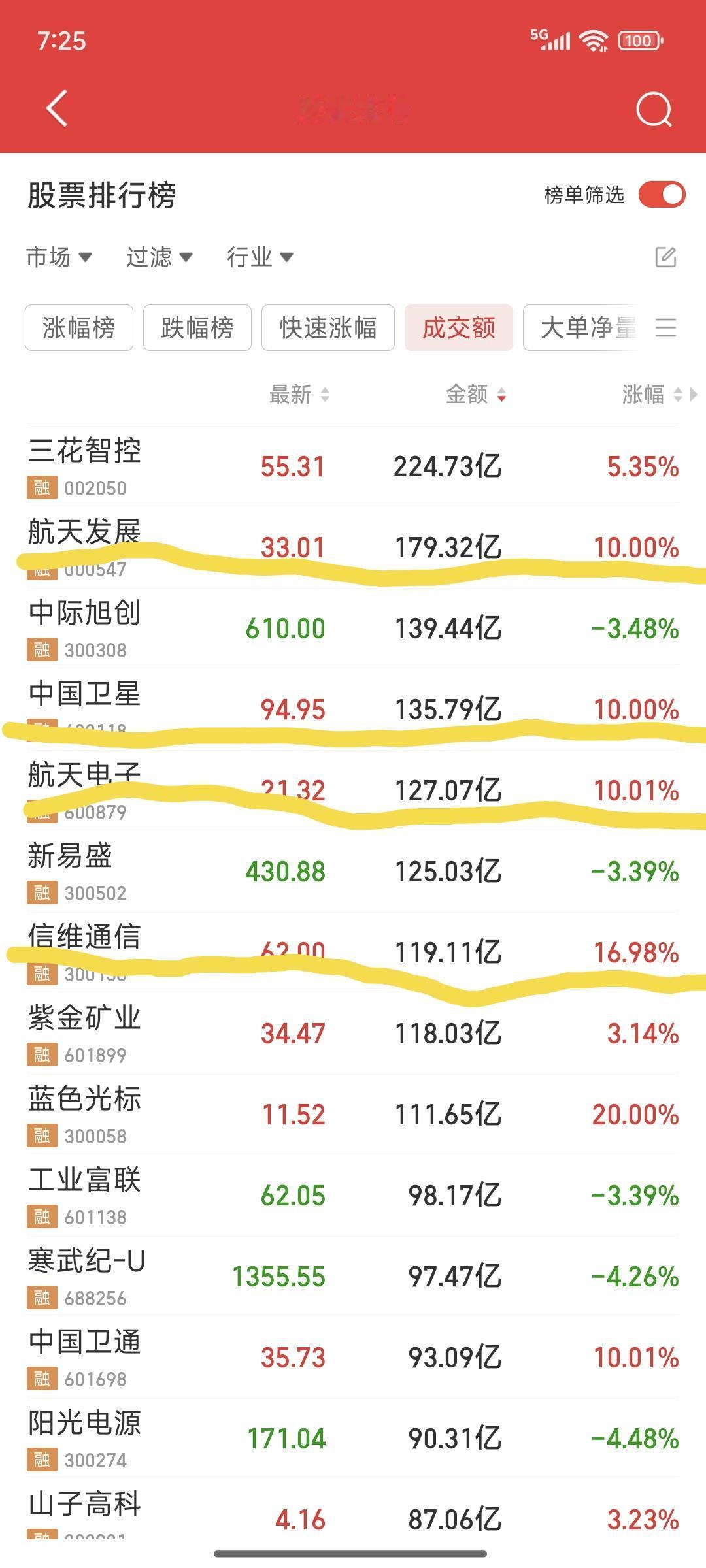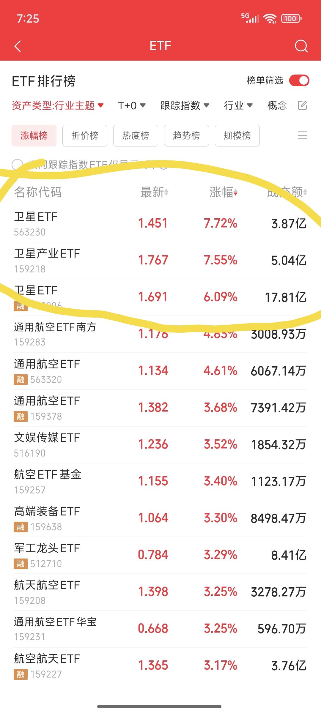 A股今天的最强主线是谁? 事实胜于雄辩,用数据说话 9只百亿成交额的票中 有四家是商业航天概念的 航天发展,中国卫星,航天电子三家涨停 信维通信大涨近17% 涨幅前三的ETF分别是 卫星ETF大涨7.72% 卫星产业ETF大涨7.55% 卫星ETF大涨6.09% 大声告诉我,谁是最强主线?