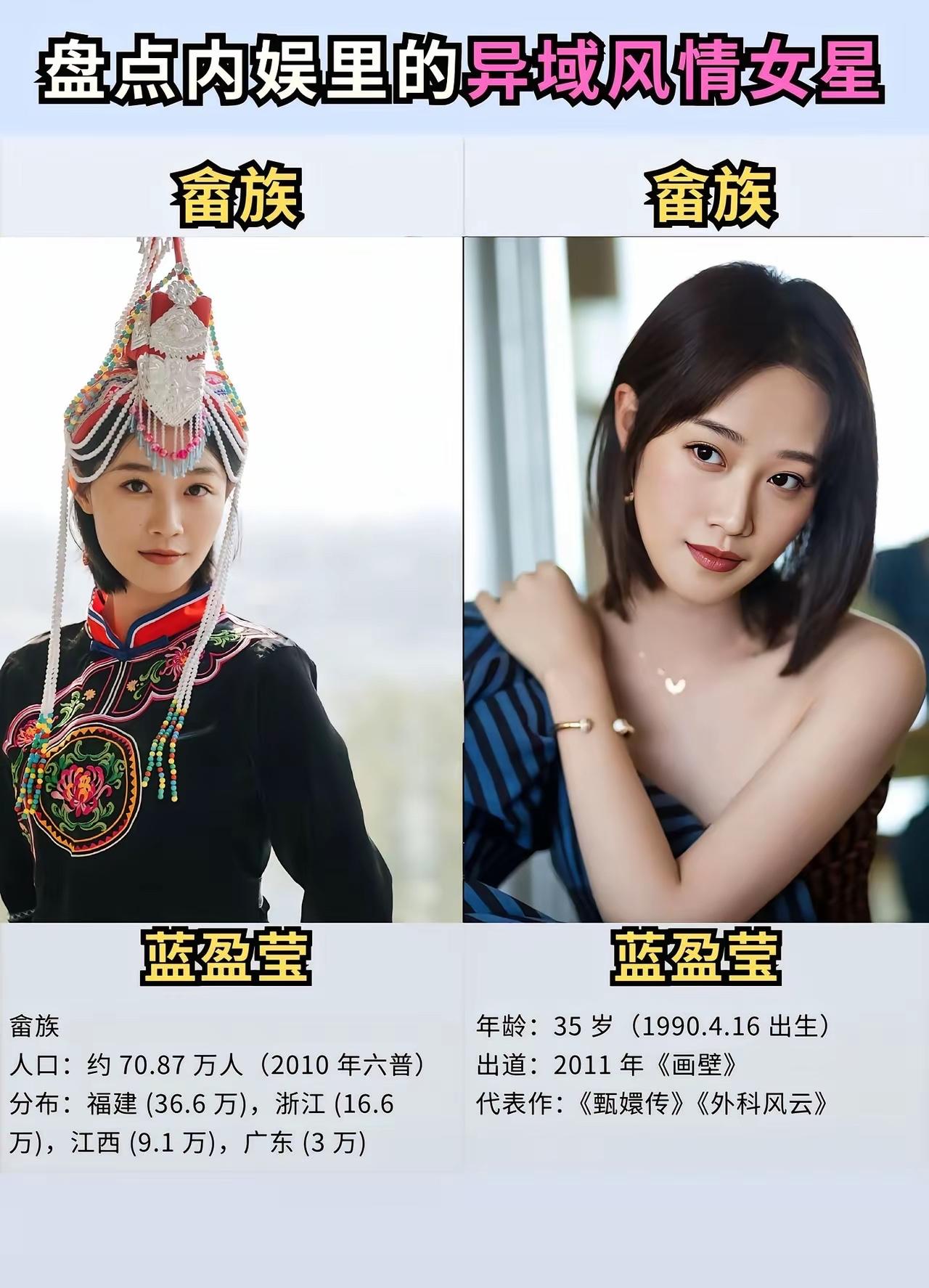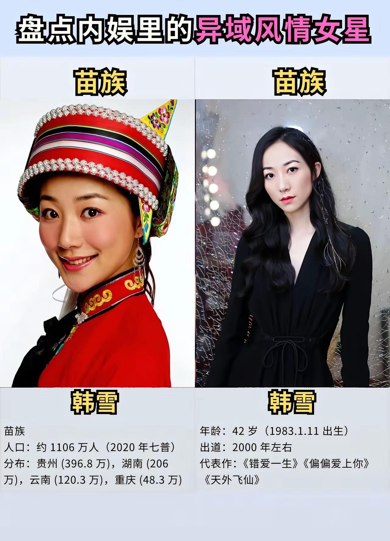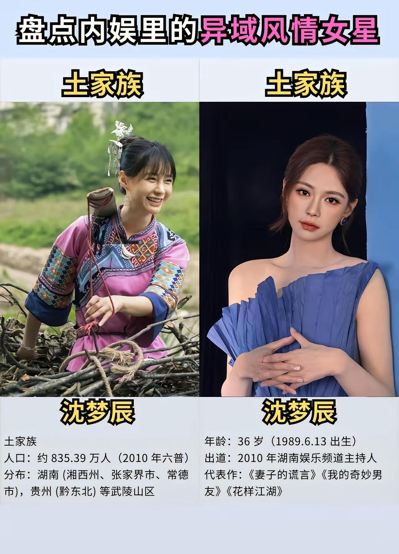 什么才是真正的异域风情 我觉得你应该认识一下这些女明星 她们不仅仅长相甜美漂亮,而且还特别的擅长载歌载舞,遇见这样的女孩子应该没有人会不喜欢吧。 来自新疆维吾尔族的迪丽热巴,她的长相绝对是让人无可挑剔的,2013年出道的她扮演过各种各样的角色,她出演的《三生三世十里桃花》《克拉恋人》等作品也是都是备受观众们的好评与认可的,这些年她的演技也在不断提升。 来自回族的刘诗诗,曾经的她以刘亦菲的替身出道,然而现在的她也早就成为妥妥的一线大明星,这些年以来她出演的作品真的不算少了,《仙剑奇侠传》《怪侠一枝梅》《步步惊心》等作品也都有她的身影。 来自白族的杨超越,她的人生绝对是极其幸运的,能够从一个籍籍无名的普通人,一步步成为娱乐圈大红大紫的明星,她的人生不可谓不精彩。 不得不说,她那甜美的长相真的在无形之中帮助了她很多,这些年来她出演的作品有《将夜》《理想之城》等,毕竟她不是科班出身的所以她的演技还是需要打磨的。
