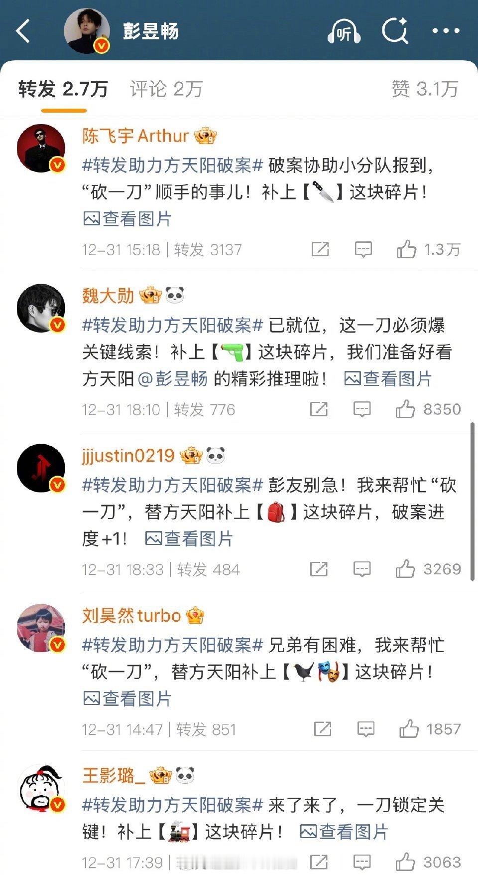 大家就这样陪彭昱畅胡闹 看这排面!彭昱畅在朋友圈的“权威地位”实锤了。能请动这么多大忙人来陪他玩“拼图”游戏,这场线上联动简直是内娱最团结友爱的宣传现场,看得出彭彭平时人缘有多好,为兄弟新片操碎了心啊!