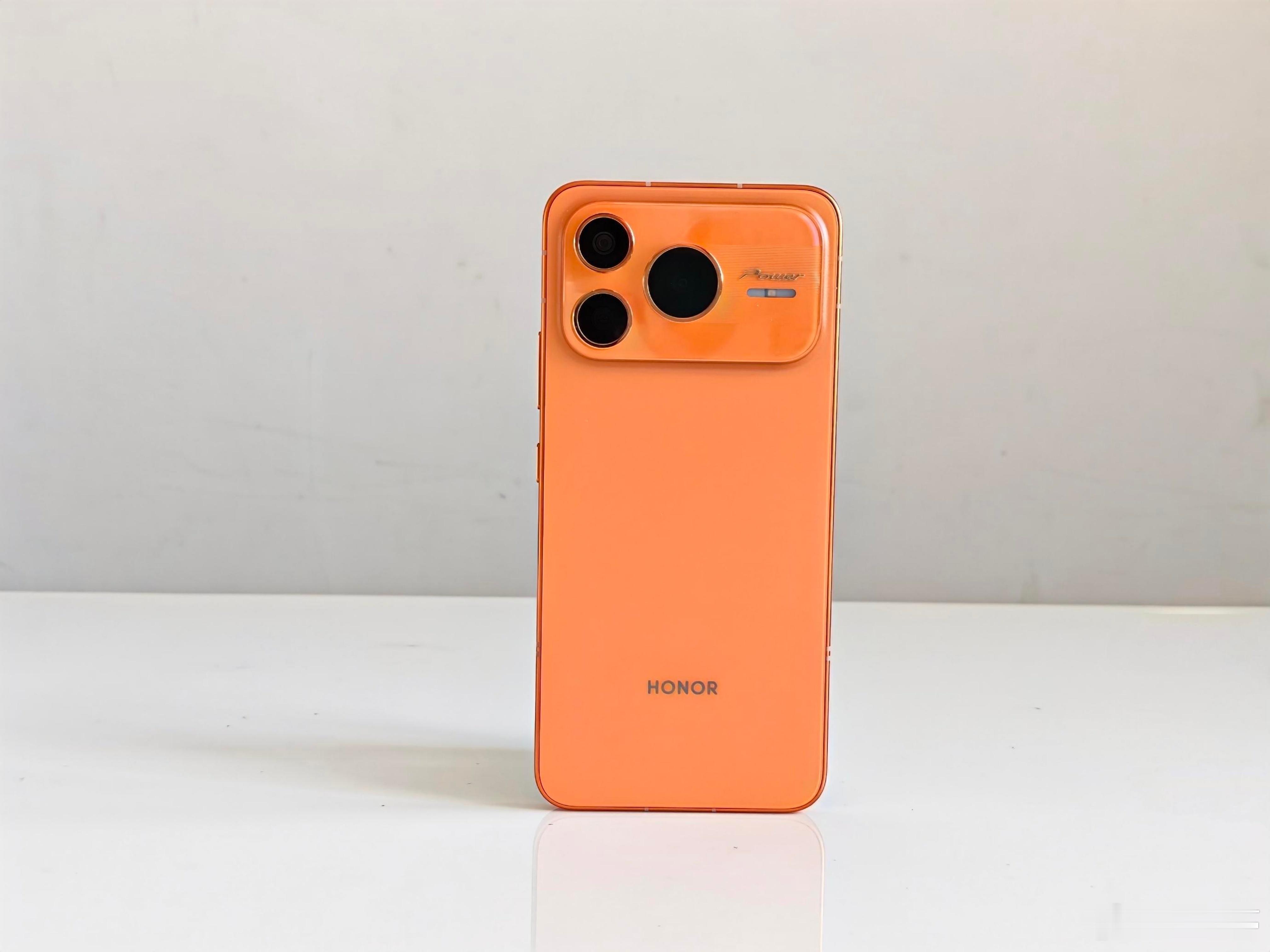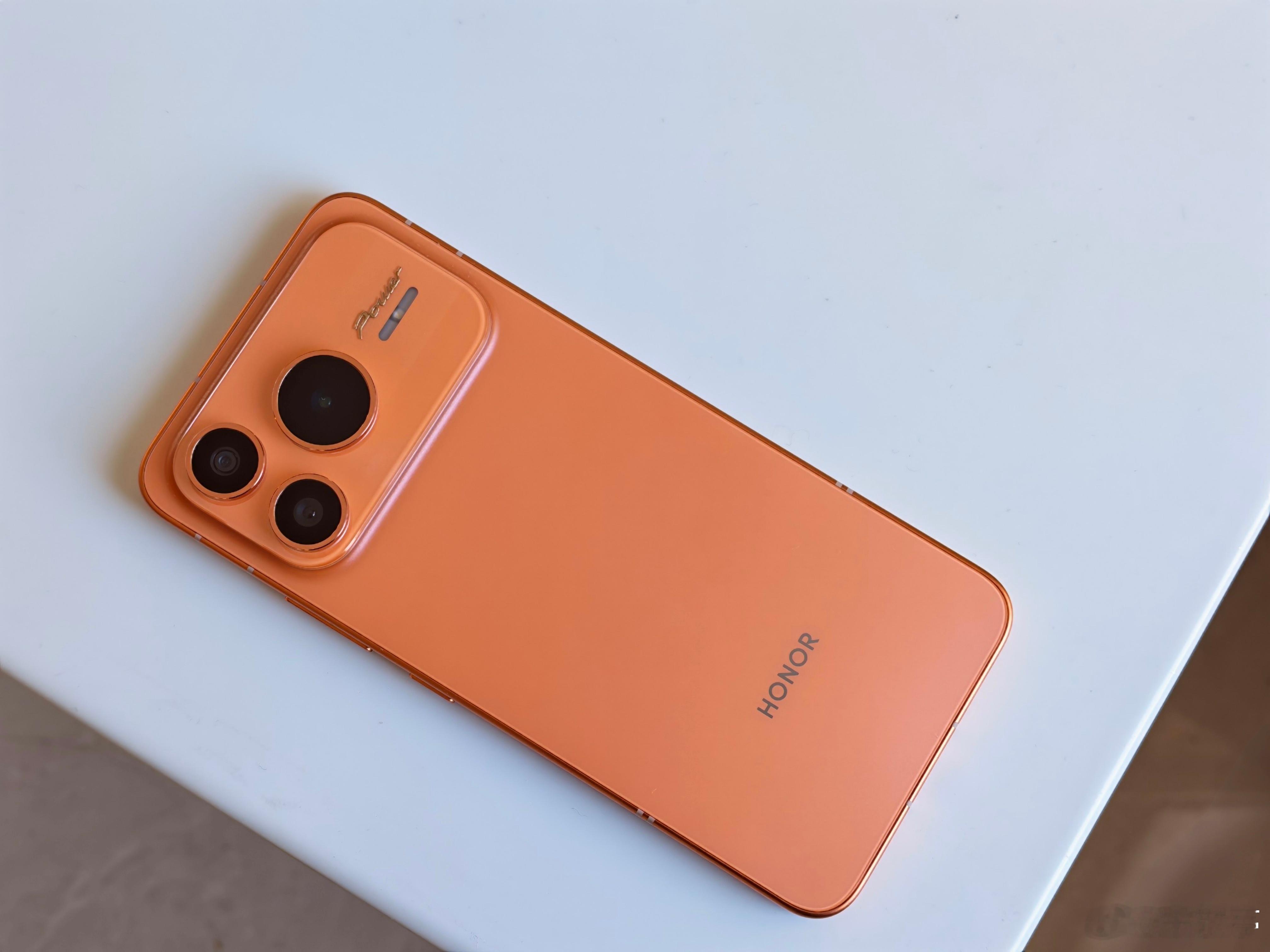 荣耀Power2这橙色真机还是很好看的,背后一体冷雕玻璃,金属中框。10080mAh大电池下机身并没有太厚,看中框的注塑条就知道这次信号也是顶级,这颜值、做工、续航、性能同价位都是越级了。
