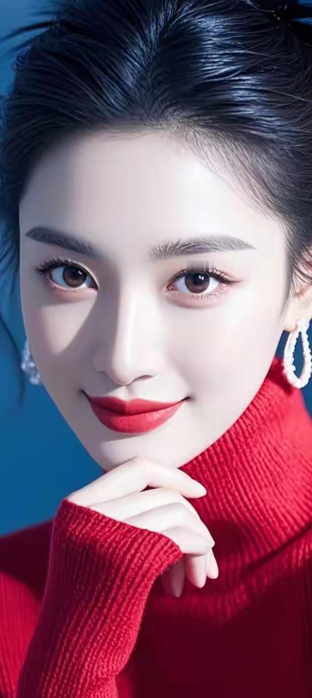 温柔红唇,优雅微笑,红衣少女,惊艳时光