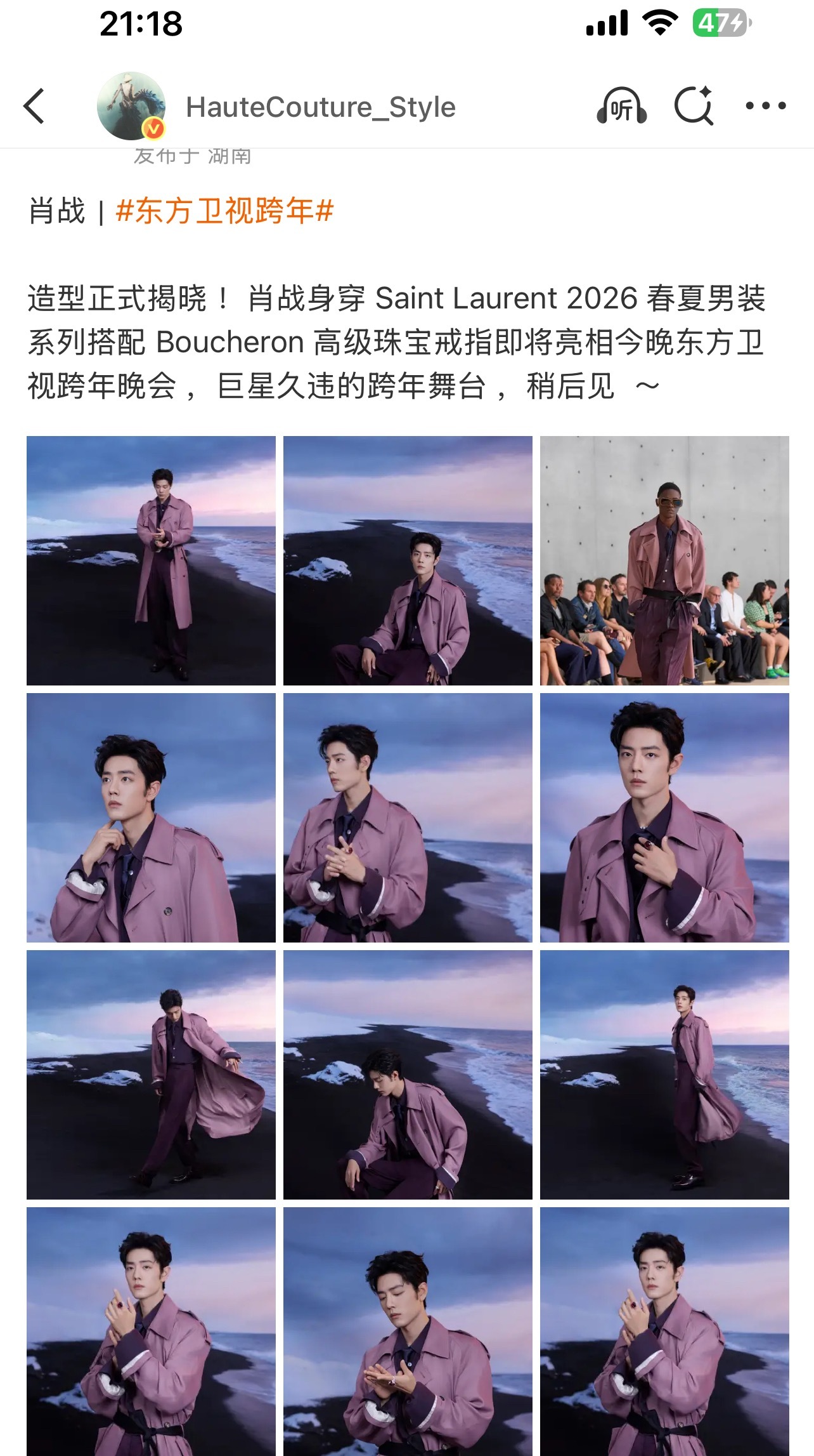 肖战东方卫视跨年造型出图,紫色风衣潇洒优雅!!YSL超季就这么穿上了!巨星舞台