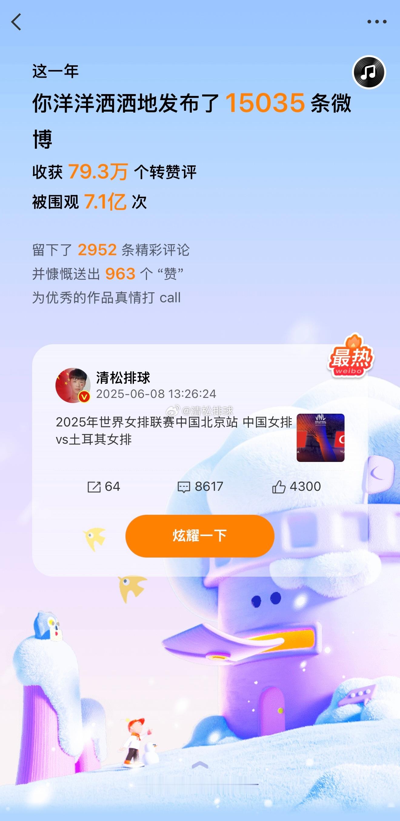 2025365天15035条微博177.3万字7.1亿次清松带你看排球