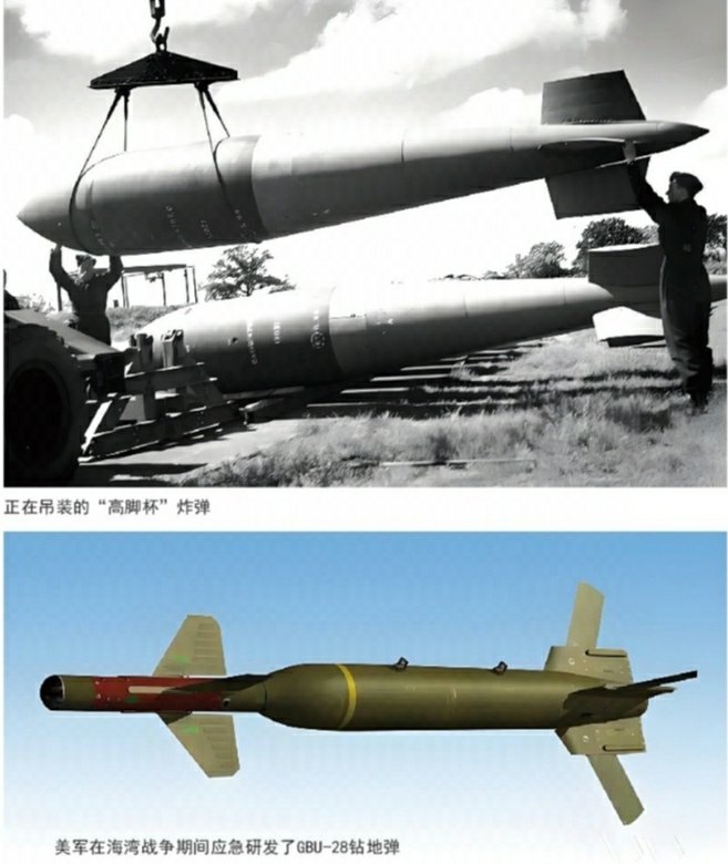 GBU-57初登战争舞台-浅谈'午夜之锤”行动中的钻地弹②技术路径 目前,绝大多数型号的钻地弹头部为尖锥形,弹体仍是具备较大长径比的圆柱形。近年来,越来越多的钻地弹在弹体中部安装了一对带下反角的小展弦比边条翼,在追求增大投掷距离的同时,也在极力控制飞行阻力,尽可能将弹翼对钻地弹着地撞击速度造成的负面影响降至最低,并加强对弹体的滚转控制。 众所周知,钻地弹只有以尽可能高的速度,以90度垂直角撞击目标地面时,侵彻深度才最大。这就要求其空中弹道必须以大角度急坠才行。但如此一来,投掷距离必然较常规弹道大为缩短。例如,当F-22在高空以超音速巡航状态投放GBU-39攻击普通目标时,GBU-39凭借大展弦比的菱形弹翼可达180千米射程。但在同等投射条件下垂直攻击飞机洞库时,GBU-39的射程就急剧减少为20余千米。钻地弹的投掷距离越小,意味着在高烈度战争中载机遭敌防空火力威胁程度就越高。加装弹翼固然能明显增加钻地弹的射程,但弹翼阻力却会降低钻地弹触地速度,对提高侵彻深度不利。小展弦比边条翼的升阻比较高,在诸多翼型中是最适用于钻地弹提高射程的。给弹翼设置下反角,虽然会降低钻地弹的横向稳定性,但也有利于减少弹翼的诱导阻力。更何况,钻地弹因弹翼下反角而增加的弹体横向敏捷性和滚转控制能力,有利于其在下坠过程中调整姿态,提高投掷精度并让撞击角度尽可能接近理想值。 一些型号的钻地弹借鉴串联反坦克战斗部的设计,由前置聚能破甲战斗部形成的金属射流像高压水柱冲击烂泥一样,在土壤开出一条通道。主侵彻战斗部顺着这条通道继续往下钻,一直钻到预定深度才爆炸。如此一来,就可以降低对钻地弹撞击速度要求。这种设计在破障弹、攻坚弹上应用较多,在反跑道弹药上也有应用。但深入研究表明,反地下坚固设施的钻地弹若采用这种设计,金属射流对土壤和岩石的作用效果远不及预期。聚能破甲战斗部对炸高有严格要求。那么在钻地弹长度一定的情况下,势必要明显削弱主侵彻战斗部的长度及重量,算下来很可能得不偿失。综合考虑,还是在主侵彻战斗部前面设置一个坚硬的动能穿甲锥更靠谱一些。 钻地弹的侵彻能力,很大程度上取决于自身动能。动能公式是质量乘以速度的平方除以二,也就是说,提高撞击速度所取得的动能增益要高于单纯提高质量。由于空气阻力的存在,自由落体炸弹落地速度很难超过音速。理论上,在钻地弹尾部增设火箭发动机,在钻地弹接近地面时点火“冲刺”,可以明显提升钻地弹的着地撞击速度。但是,着地撞击速度的提高,对弹体材料的强度和韧性提出了更为苛刻的要求,否则无法保证内置电子器件、延时引信等装置能够在高速侵彻时形成的高温、高压等极端环境下正常工作。如果壳体材料不过关,甚至可能造成因撞击温度接近或超过弹头材料的熔点而导致弹头变形,出现蘑菇弹头效应而导致侵彻深度不升反降的后果。因此这是个“水多了加面,面多了加水”的难题。 为提高攻击精度,一些型号的钻地弹加装了激光制导控制组件。这种制导方式精度极高,但却要求载机或其他飞机在炸弹命中前一直保持对目标的激光照射。在高烈度战争中,这意味着照射飞机不能作大范围或大过载机动,很有可能成为防空火力绝佳的目标。更何况激光制导受浓云、雨雾等不良天候影响很大,全天候作战能力不足。 另一些钻地弹采用惯导+GPS制导,意味着载机可以“发射后不管”,大大提升了载机的战场生存能力和使用灵活性。惯导不依赖外界提供信息支持,自然也就不存在外界干扰的问题。它虽然有制导误差随着投掷距离的增加而增大的缺点,但可以通过GPS制导辅助修正误差。GPS军码的导航精度可达米级,且不受不良天候影响。虽然GPS制导的抗干扰性较差,尤其是在森林地带和城镇地区易受干扰,但它与惯导相辅相成,优势互补,二者组合制导精度能接近激光制导水平,完全可以满足钻地弹的需要。