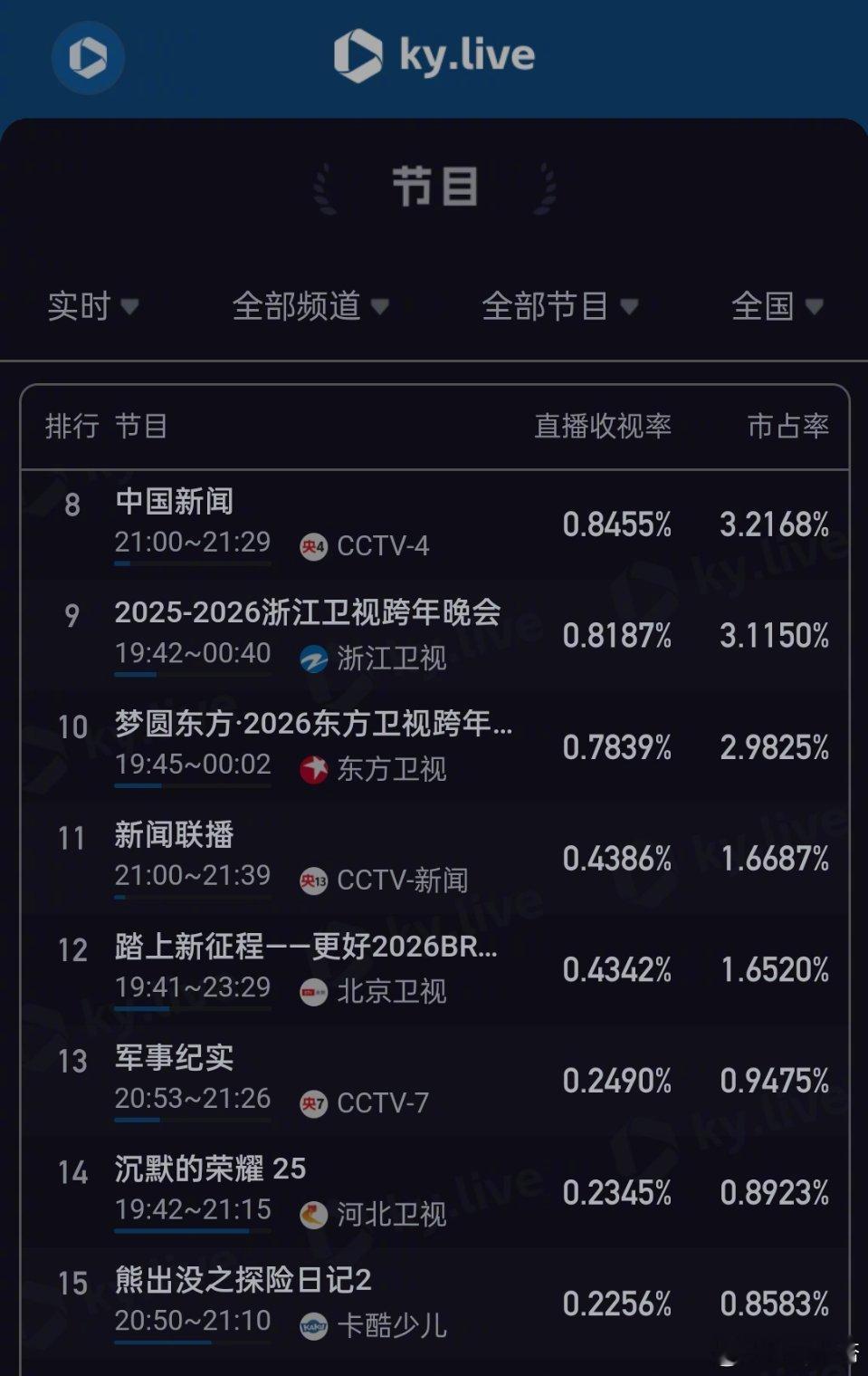 今年跨晚收视率各台跨年晚会收视率酷云最新数据目前跨晚收视数据🈶
