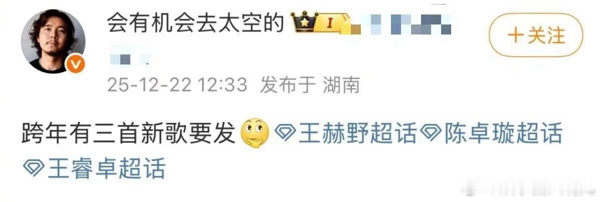 王赫野别着急我一个一个来 别人跨年是看晚会,王赫野跨年是“赶通告”。卫视舞台+央视亮相+新歌发布,这“三合一”的豪华套餐,不仅展示了他日益攀升的人气和认可度,更是送给了所有歌迷一份诚意满满的新年大礼。野子,真的支棱起来了!