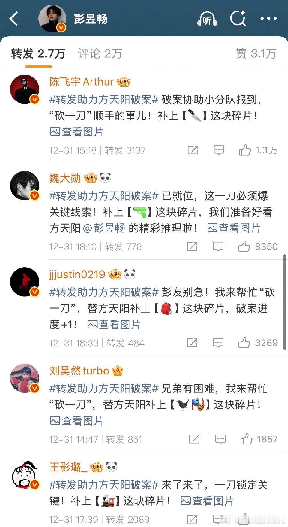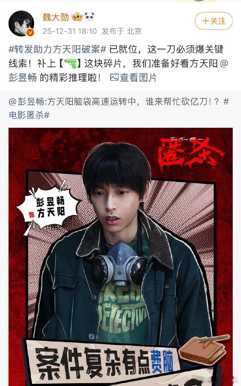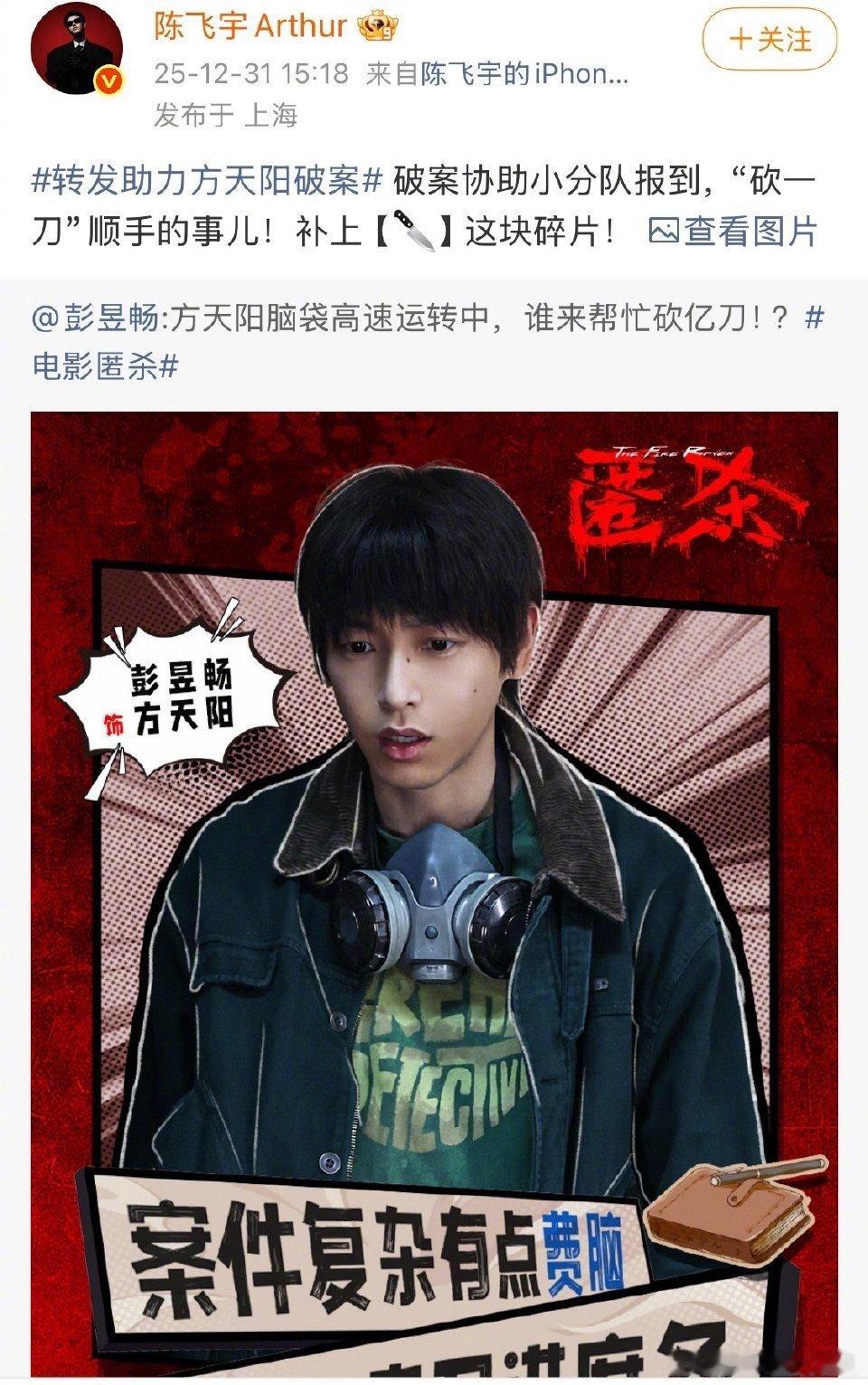 大家就这样陪彭昱畅胡闹 为了《匿杀》票房,彭彭是彻底“杀”疯了!自己演的角色在电影里要从“胆怯”变得“勇敢”,戏外为了宣传更是不走寻常路,直接“绑架”好友团陪他一起玩。这场面,谁看了不说一句:真兄弟就是陪你一起“胡闹”。