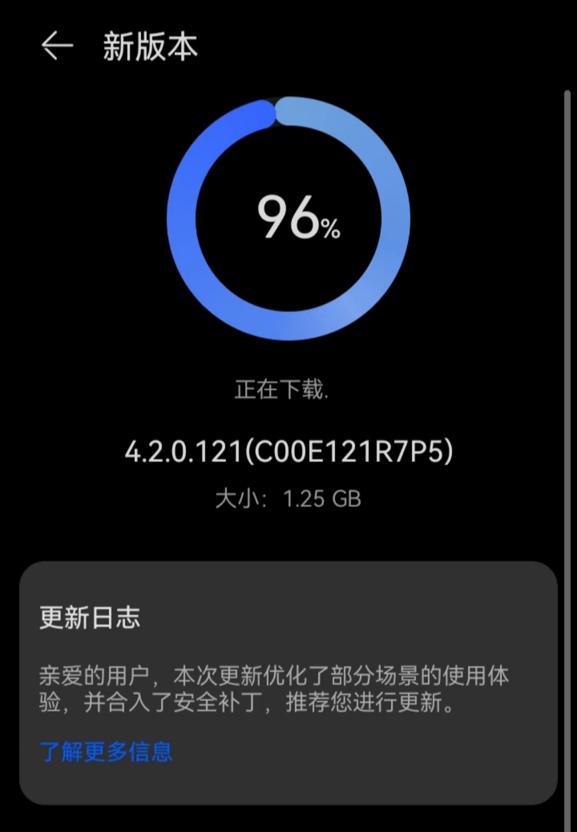 从122月30号开始,包括华为nova7、荣耀v30/30、荣耀30/30Pro/30Pro+、荣耀play4Pro等多款老机型,都收到了新版本推送,普遍升级到了鸿蒙4.2.0.121,好多都是五六年前的机型了,现在还能维护是真牛逼。