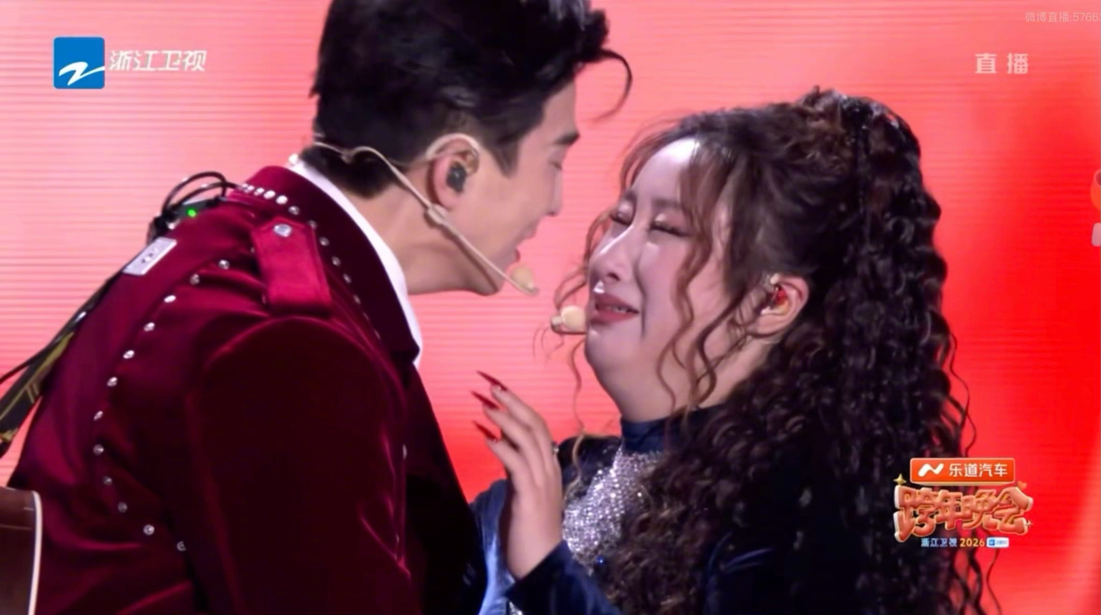 跨年夜的舞台居然藏着这么大的惊喜!李川和锤娜丽莎合唱完歌曲,突然单膝跪地掏出戒指