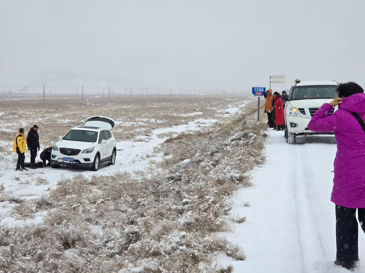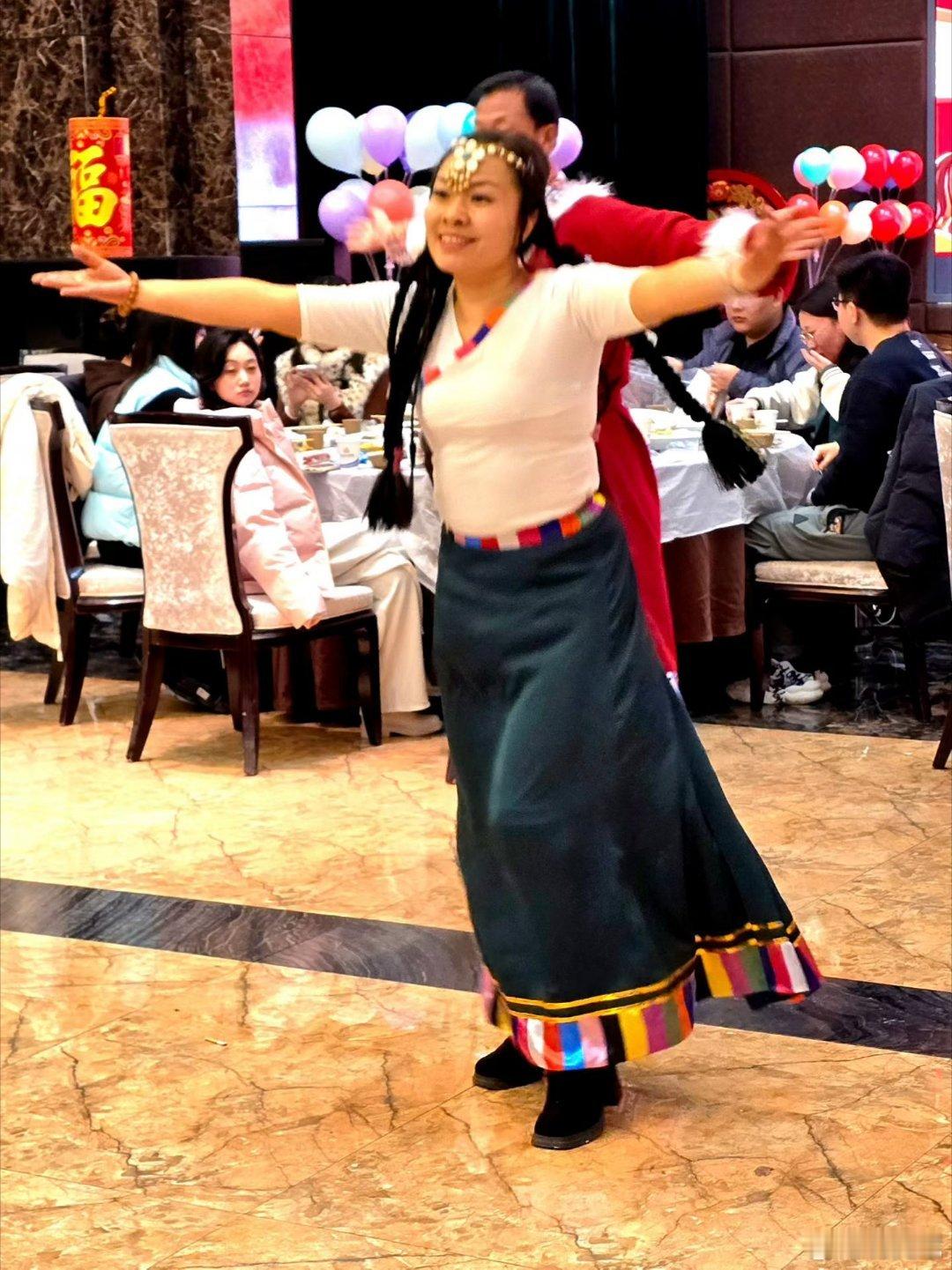 今日贺兰山雪花粉飞,一辆车滑下路基,所幸人员无碍。但见一宁夏女子开了一辆粉色皮卡下路基来救援。一问这女子叫刘丽芬,是位驾车纵横西部沙漠的女汉子! 2017年,2018年,2019年,三届阿拉善英雄会T3沙漠越野挑战赛女子组冠军、中蒙俄国际越野拉力赛单车赛女子组冠军、中汽联注册赛车手、国家二级裁判员……这位奇女子沙漠行车有如水上操舟纵横捭阖! 北寺晚会以我的《百年前来贺兰山的外国探险家》为开场。宴会高潮是烤全羊,剪彩时竟没有刀,我只好抽出随身的瑞士折刀来分解。席间我被旅友们的藏族歌舞所激励。我邀了一位舞者风儿合作,我用藏语言联唱《羌谐》和《日喀则逻谐》,风儿伴舞。在这2025年的最后一天,我不是在唱,而是竭尽全力的吼!