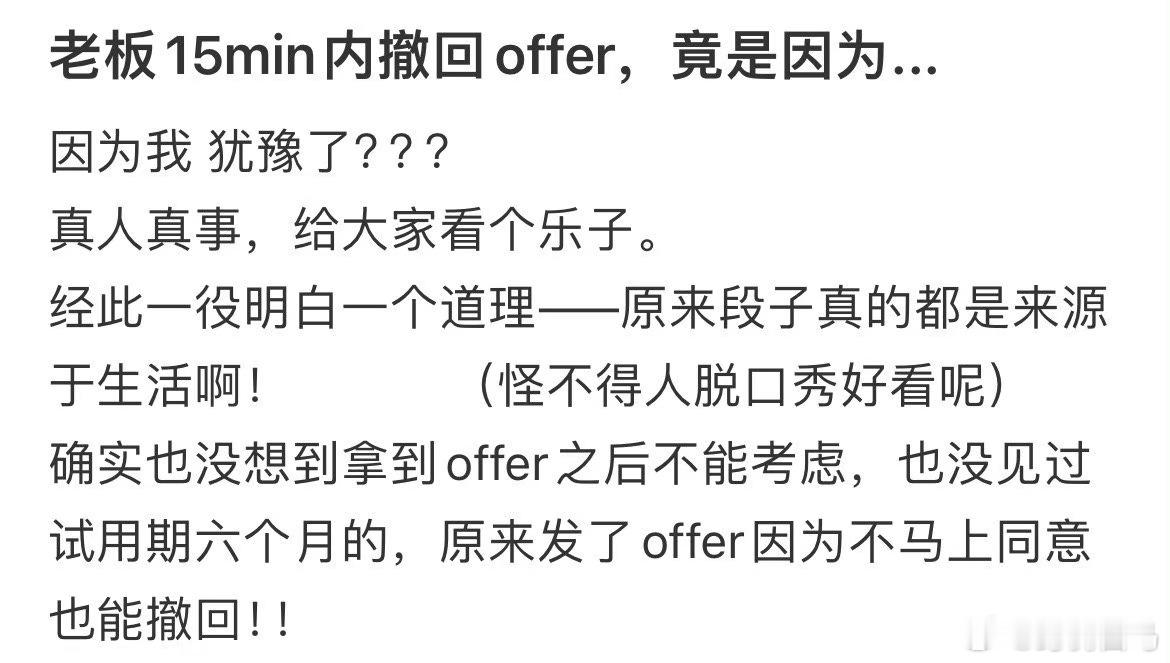 老板15分钟内撤回offer,竟是因为… 老板笑了7个月才发出来