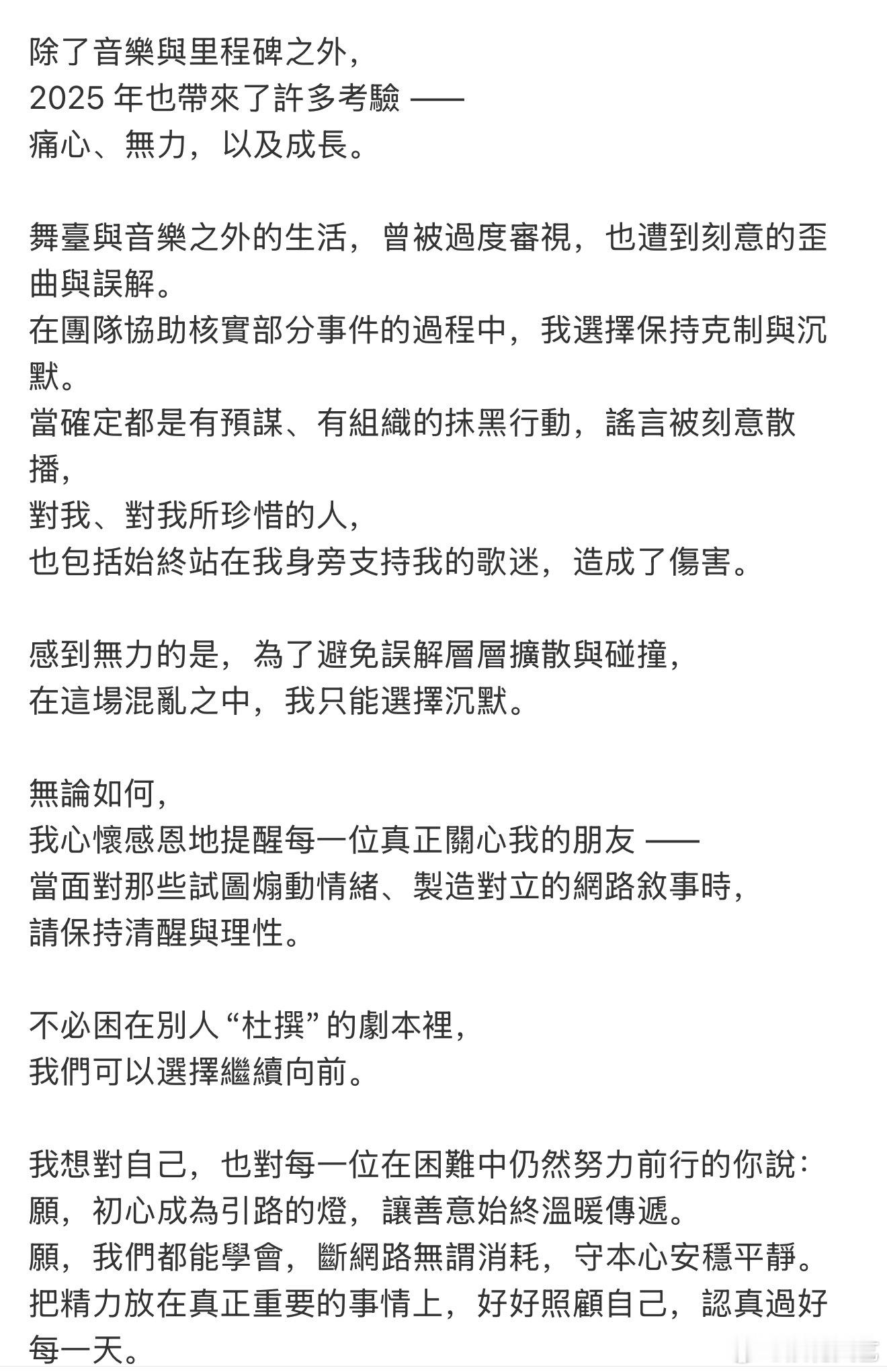 林俊杰发长文告别2025