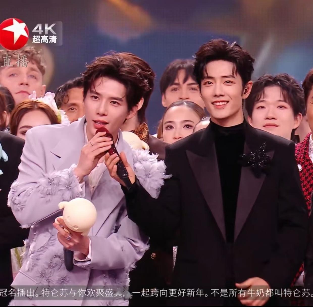 跨年夜,肖战、王安宇、于适三张伟大的脸同框,太震撼了!肖战给王安宇递话筒,还与王