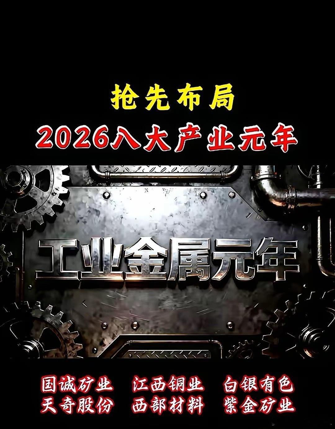 2026抢先布局,8大产业元年。产业1,以江西铜业、西部材料、紫金矿业等为代表的
